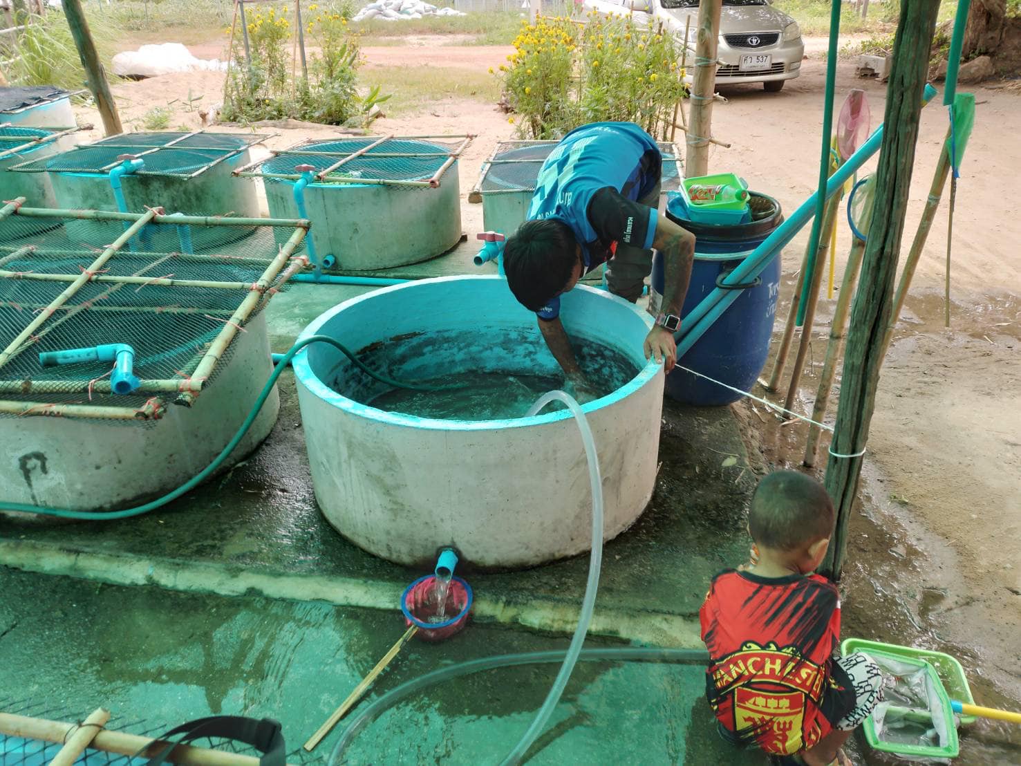 วันที่ 27 มิถุนายน 2567 นายอนันต์ สุนทร ประมงจังหวัดราชบุรี มอบหมายให้ นางอุทุมพร เหมหงษา ประมงอำเภอสวนผึ้ง ปฎิบัติงานโครงการฟาร์มตัวอย่างตามแนวพระราชดำริ บ้านบ่อหวี ตำบลตะนาวศรี อำเภอสวนผึ้ง จังหวัดราชบุรี โดยปฎิบัติงานร่วมกับ นายธนบดี อินทะมาต (ผู้จัดการฟาร์มตัวอย่างฯ บ้านบ่อหวี) เพื่อติดตามผลการดำเนินงานกิจกรรมส่งเสริมการเพาะเลี้ยงปลาสวยงามในฟาร์มตัวอย่างตามแนวพระราชดำริ โดยเจ้าหน้าที่ผู้รับผิดชอบกิจกรรมประมง ได้ปฏิบัติงานด้วยความเรียบร้อย มีการคัดลูกพันธุ์ปลา, เปลี่ยนถ่ายน้ำ , และดูดตะกอนอย่างสม่ำเสมอ และเตรียมวางแผนนำ พันธุ์ปลาหางนกยูง และ ปลาสอด นำไปปล่อย ให้แก่ประชาชนและมอบให้แก่โรงเรียน เพื่อนำไปปล่อยบริเวณ กระถางบัว และ แหล่งที่เกิดลูกน้ำยุงลายเพื่อเป็นการป้องกันโรคไข้เลือดออก ให้แก่ประชาชนต่อไป