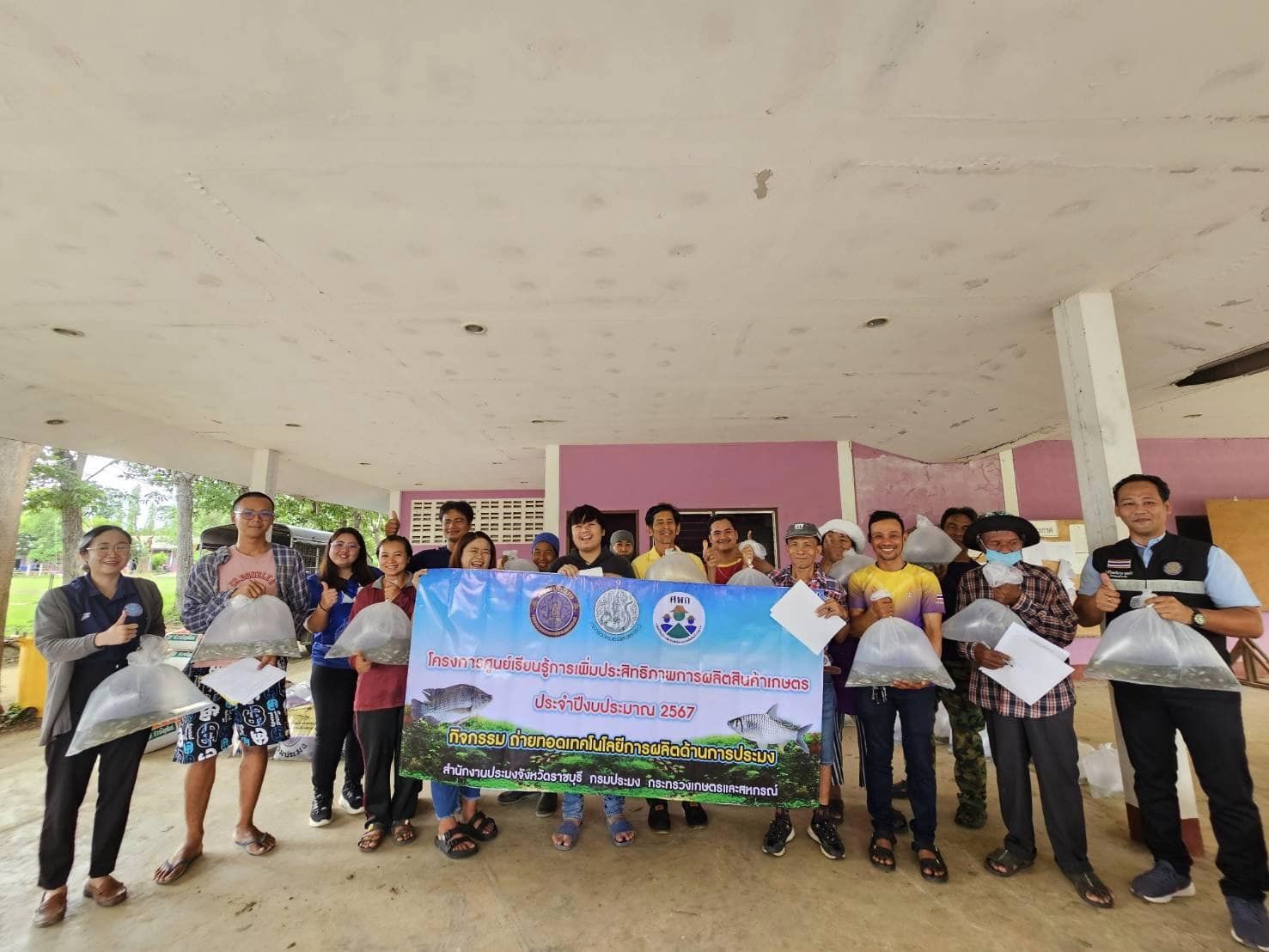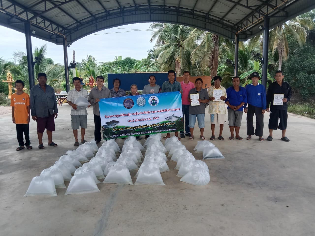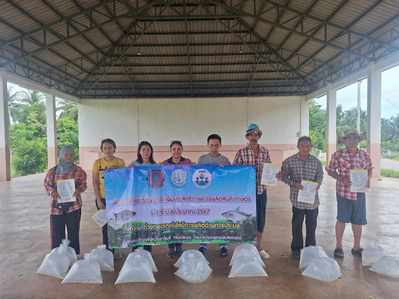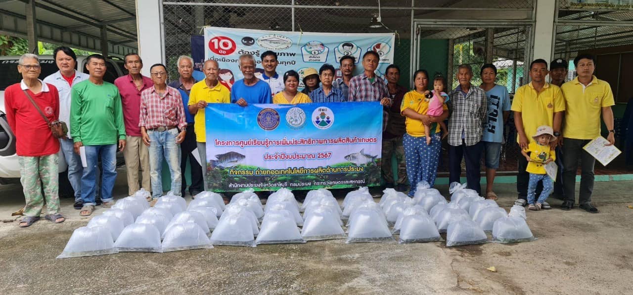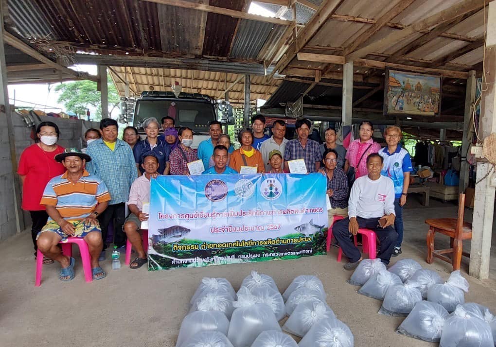 วันที่ 16 กรกฎาคม 2567 นายอนันต์ สุนทร ประมงจังหวัดราชบุรี มอบหมายให้ นายจิระพงศ์ ศิริวัฒน์ หัวหน้ากลุ่มพัฒนาและส่งเสริมอาชีพการประมง นางสาวจันทร์ทิพย์ บรรลือเดช นักวิชาการประมงชำนาญการ นายชานนท์ สรสิทธิ์ เจ้าพนักงานประมงปฏิบัติงาน นางสาวกานต์ชนก แสงประทุม นักวิชาการประมง และนางสาวปารมี ฤกษ์ดี นักวิชาการประมง กลุ่มพัฒนาและส่งเสริมอาชีพการประมง ร่วมกับ นางสายหยุด ฤทธิ์ช่วย ประมงอำเภอโพธาราม (ปฏิบัติงานด้านการประมงอำเภอจอมบึง) นายมณฑล อ่วมเทศ ประมงอำเภอบางแพ (ปฏฺบัติงานด้านการประมงอำเภอดำเนินสะดวก) นางขวัญฤทัย แซ่ลี้ ประมงอำเภอบ้านโป่ง (ปฏฺบัติงานด้านการประมงอำเภอวัดเพลง) นางอุทุมพร เหมหงษา ประมงอำเภอสวนผึ้ง (ปฏฺบัติงานด้านการประมงอำเภอบ้านคา) และว่าที่ร้อยตรีมารุต นุตตะโร ประมงอำเภอเมืองราชบุรี (ปฏฺบัติงานด้านการประมงอำเภอปากท่อ) ลงพื้นที่ปฏิบัติงานโครงการศูนย์เรียนรู้การเพิ่มประสิทธิภาพการผลิตสินค้าเกษตร ประจำปี 2567 จัดประชุมถ่ายทอดความรู้ด้านการเพาะเลี้ยงสัตว์น้ำจืดเบื้องต้น ให้แก่เกษตรกรที่เข้าร่วมโครงการ ในพื้นที่ อ.จอมบึง อ.วัดเพลง อ.ดำเนินสะดวก อ.บ้านคา และ อ.ปากท่อ อำเภอละ 25 ราย รวมจำนวนทั้งสิ้น 125 ราย พร้อมทั้งสนับสนุนปัจจัยการผลิตเป็นปลากินพืช (ปลานิล ปลาตะเพียน ขนาด 3-5 ซม.) จำนวน 500 ตัว/ราย