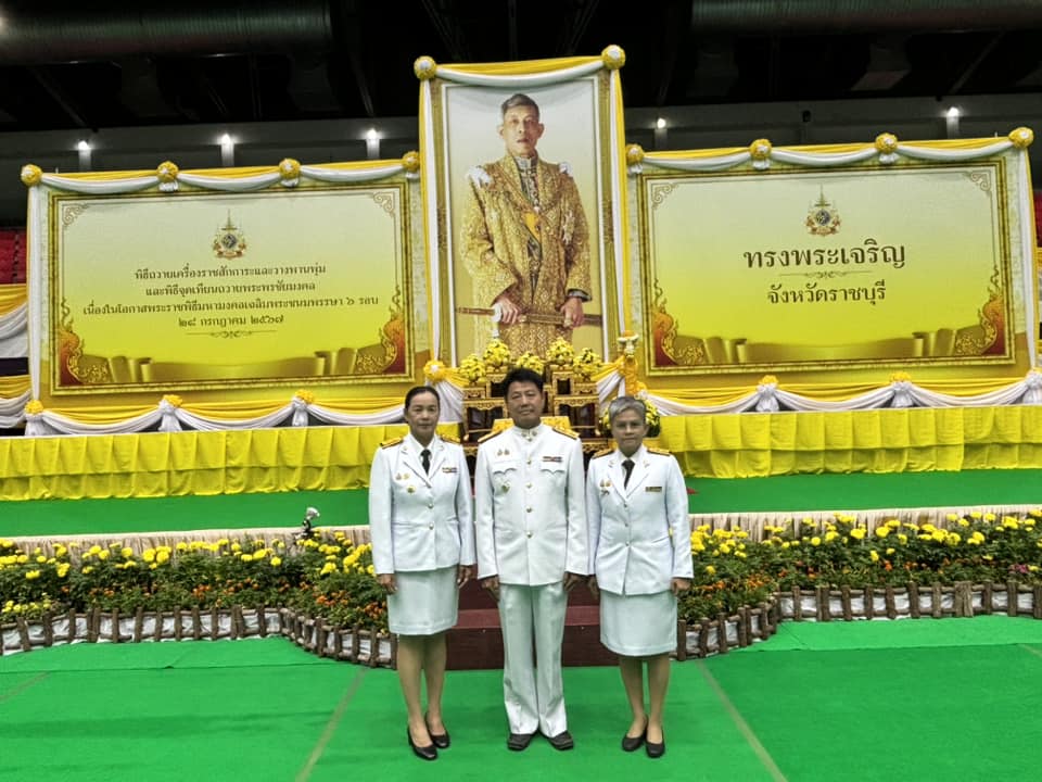 วันอาทิตย์ที่ 28 กรกฎาคม 2567 เวลา 17.00 น.นายอนันต์ สุนทร ประมงจังหวัดราชบุรี นางสาวสุรังษี ทัพพะรังสี ผู้อำนวยการศูนย์วิจัยและพัฒนาการเพาะเลี้ยงสัตว์น้ำจืดราชบุรี พร้อมด้วยข้าราชการและเจ้าหน้าที่ สำนักงานประมงจังหวัดราชบุรี เข้าร่วมพิธีเฉลิมพระเกียรติพระบาทสมเด็จพระเจ้าอยู่หัว เนื่องในโอกาสพระราชพิธีมหามงคลเฉลิมพระชนมพรรษา 6 รอบ 28 กรกฎาคม 2567 พิธีถวายเครื่องราชสักการะและวางพานพุ่ม และพิธีจุดเทียนถวายพระพรชัยมงคล โดยมีนายเกียรติศักดิ์ ตรงศิริ ผู้ว่าราชการจังหวัดราชบุรี เป็นประธานในพิธี ณ อาคารโรงยิมเนเซียม อำเภอเมืองราชบุรี จังหวัดราชบุรี