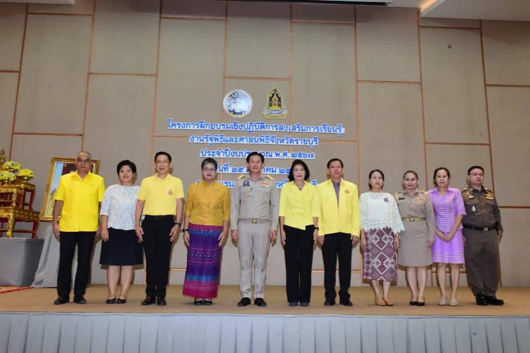 ร่วมโครงการฝึกอบรมเชิงปฏิบัติการส่งเสริมการเรียนรู้งานรัฐพิธีและศาสนพิธีจังหวัดราชบุรี