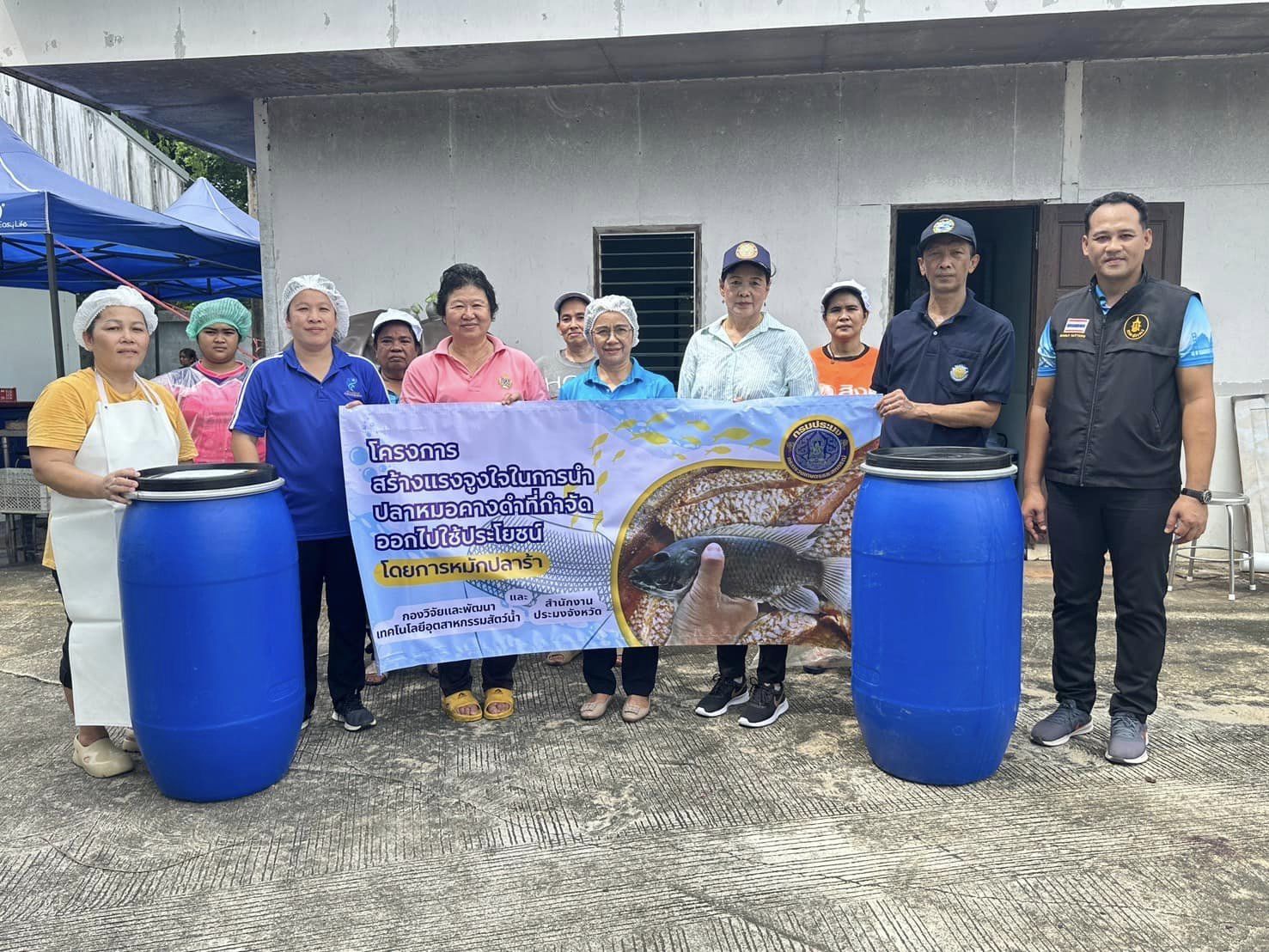 ร่วมฝึกอบรมการหมักปลาร้าจากปลาหมอคางดำ โครงการสร้างแรงจูงใจในการนำปลาหมอคางดำที่กำจัดออกไปใช้ประโยชน์โดยการหมักปลาร้า ขององค์กรชุมชนประมงท้องถิ่นวิสาหกิจชุมชนกลุ่มปลาย่างปรุงรส ปลาดาด้า