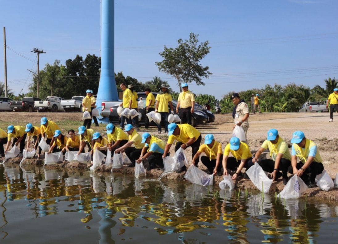 - เวลา 10:00 น. กิจกรรมจิตอาสาพัฒนาฯ โดย ข้าราชการ พนักงาน ลูกจ้างของส่วนราชการ หน่วยงานรัฐวิสาหกิจ สถานศึกษา องค์กรปกครองส่วนท้องถิ่น สมาชิกกองอาสารักษาดินแดน จิตอาสา 904 กำนัน ผู้ใหญ่บ้าน ฯลฯ พ่อค้า นักเรียนนักศึกษา ประชาชนในพื้นที่อำเภอสวนผึ้ง ได้รับการสนับสนุนพันธุ์สัตว์น้ำจากศูนย์วิจัยและพัฒนาการเพาะเลี้ยงสัตว์น้ำจืดราชบุรี ดังนี้ ปลาตะเพียนขาวจำนวน 5,000 ตัว ปลาตะเพียนทอง 5,000 ตัว ปลาสร้อยขาว 20,000 ตัว รวมทั้งสิ้น 30,000 ตัว ณ.อ่างเก็บน้ำบ้านทุ่งหญ้า หมู่ที่ 10 ตำบลท่าเคย อำเภอสวนผึ้ง จังหวัดราชบุรี