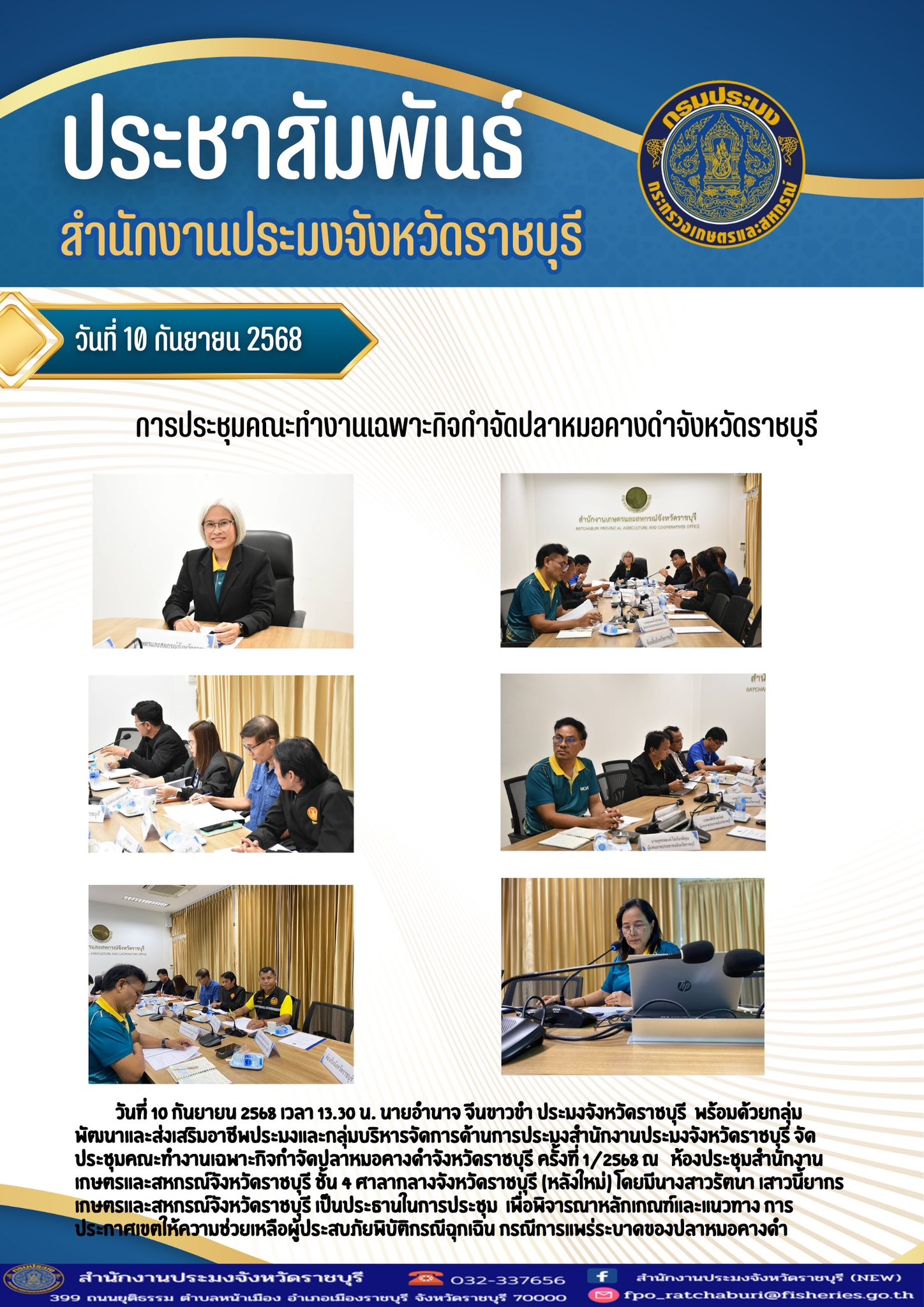 จัดประชุมคณะทำงานเฉพาะกิจกำจัดปลาหมอคางดำจังหวัดราชบุรี ครั้งที่ 1/2568..คลิก