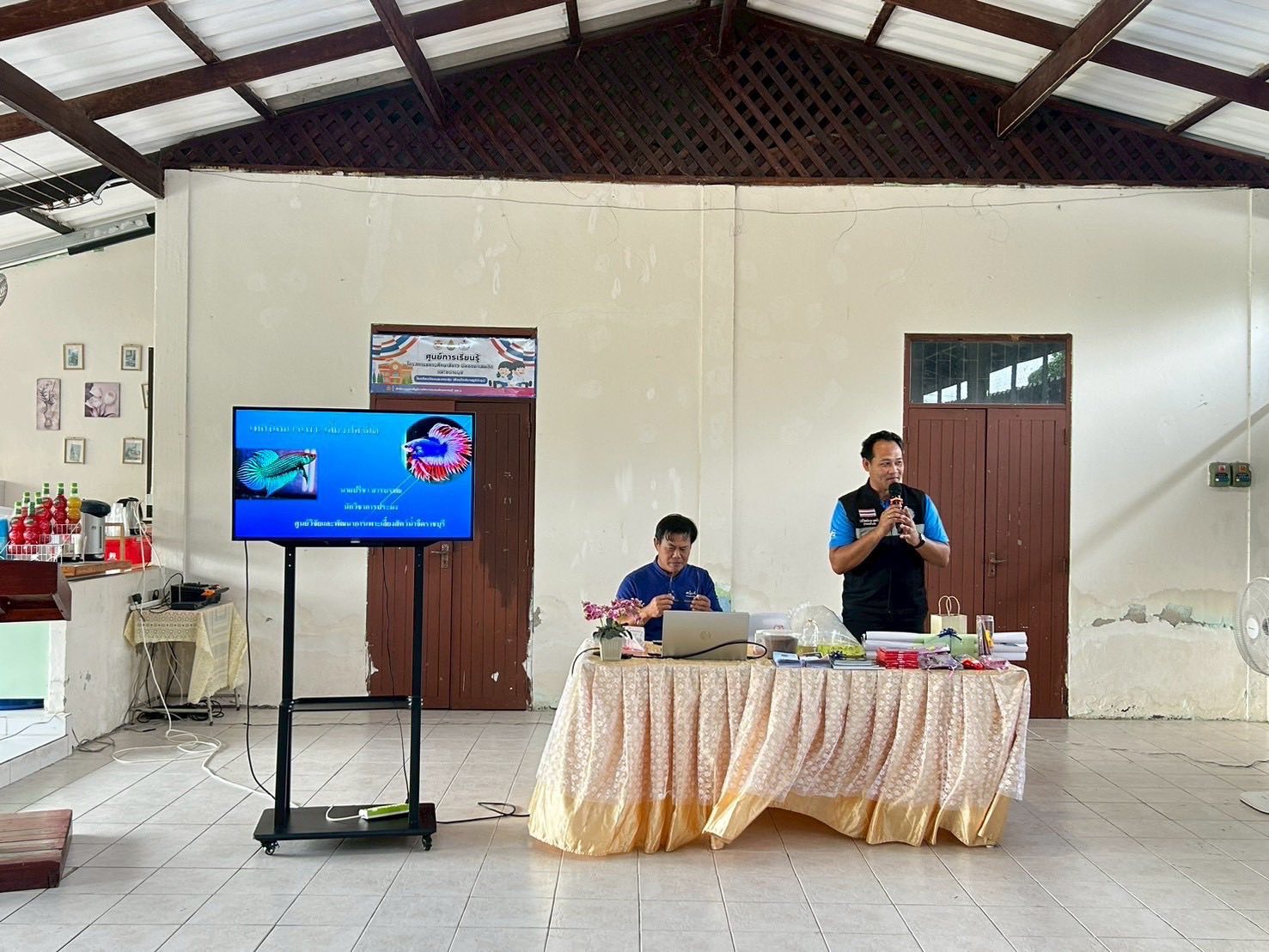 เข้าร่วมกิจกรรมอบรมให้ความรู้เรื่อง การเพาะเลี้ยงปลากัด แก่คณะครูและนักเรียน โรงเรียนวัดหนองกระทุ่ม