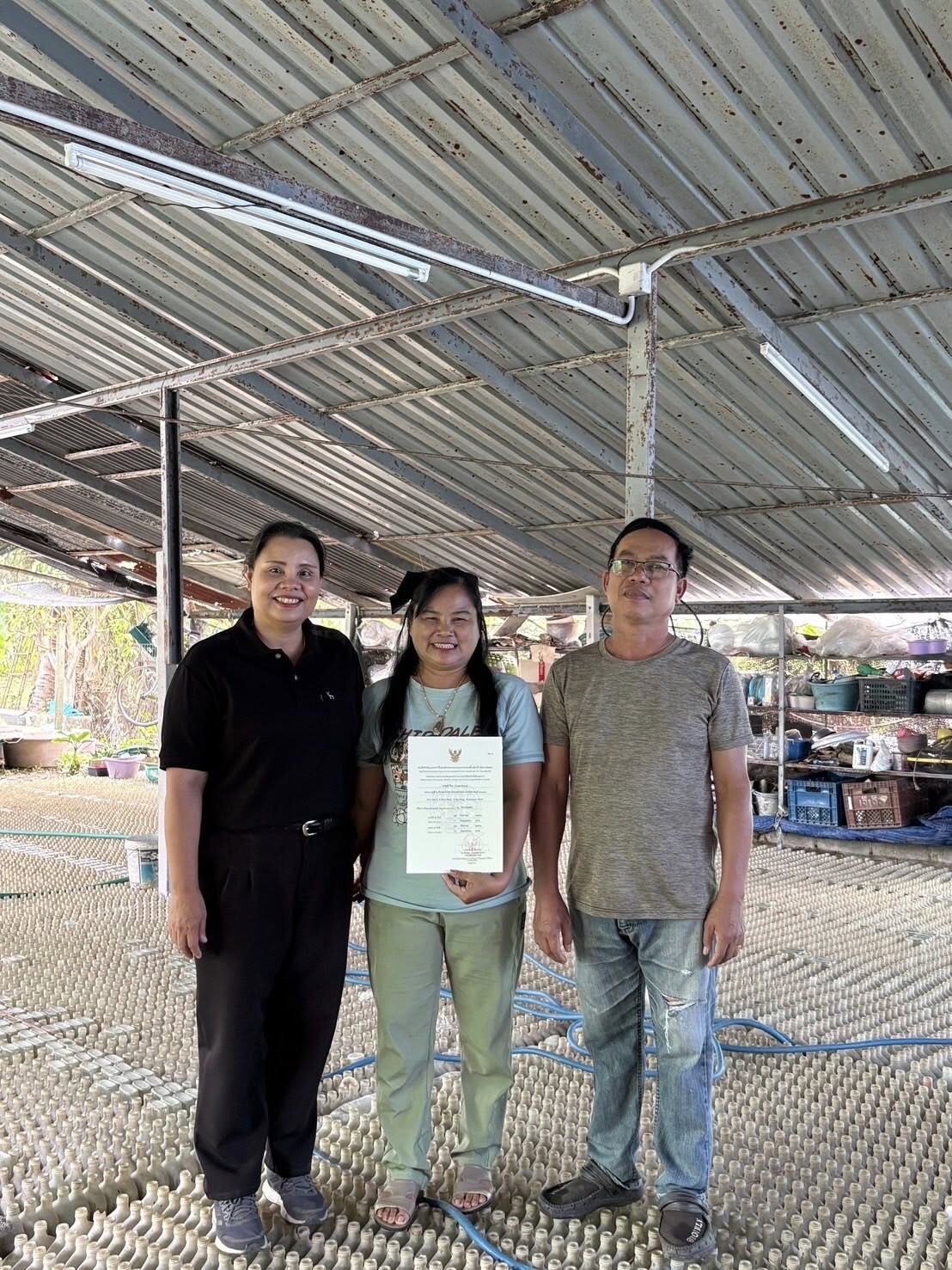 วันที่ 6 พฤศจิกายน 2568 เวลา 14.00 น. นายอำนาจ จีนขาวขำ ประมงจังหวัดราชบุรี มอบหมาย นางขวัญฤทัย แซ่ลี้ ประมงอำเภอบ้านโป่ง ลงพื้นที่เยี่ยมฟาร์มเพาะเลี้ยงสัตว์น้ำสวยงาม (ปลากัด) เกตุฟาร์ม หมู่ที่ 2 ตำบลเบิกไพร อำเภอบ้านโป่ง จังหวัดราชบุรี และมอบหนังสือสำคัญการขึ้นทะเบียนสถานประกอบการเพาะเลี้ยงสัตว์น้ำเพื่อการส่งออก (สอ.3) พร้อมประชาสัมพันธ์โครงการส่งออกสัตว์น้ำสวยงามไปต่างประเทศผ่านไปรษณีย์ไทย ให้เกตุฟาร์มทราบด้วยแล้ว