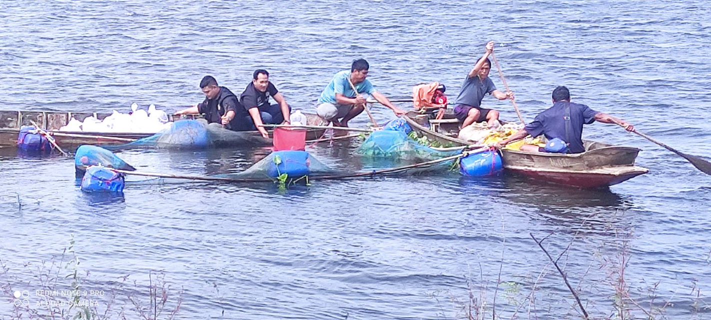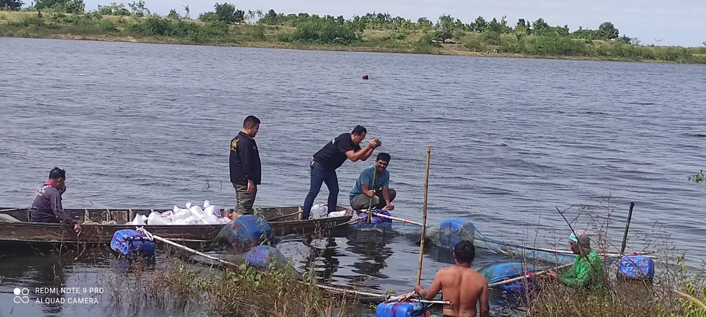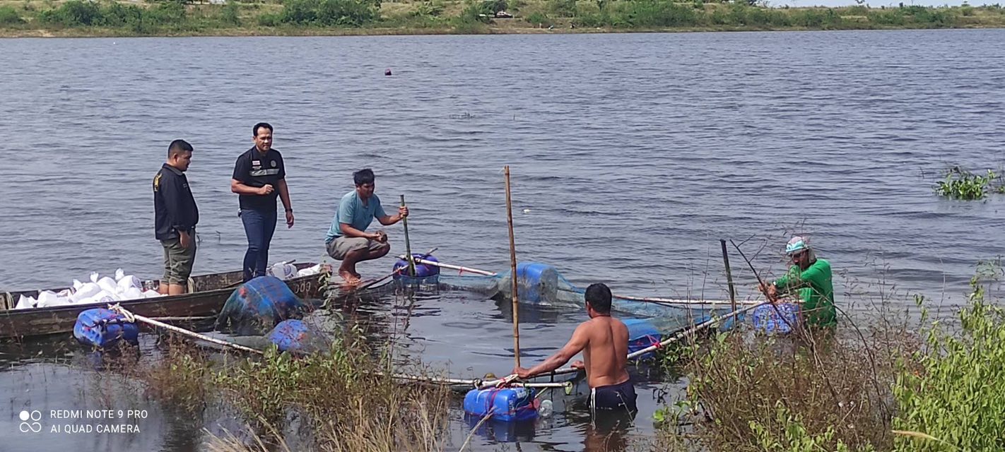 2.ปรับปรุงกระชังอนุบาลพันธุ์ปลา เนื่องจากระดับน้ำขึ้นสูง และลมพัดแรง ทำให้กระชังได้รับความเสียหาย