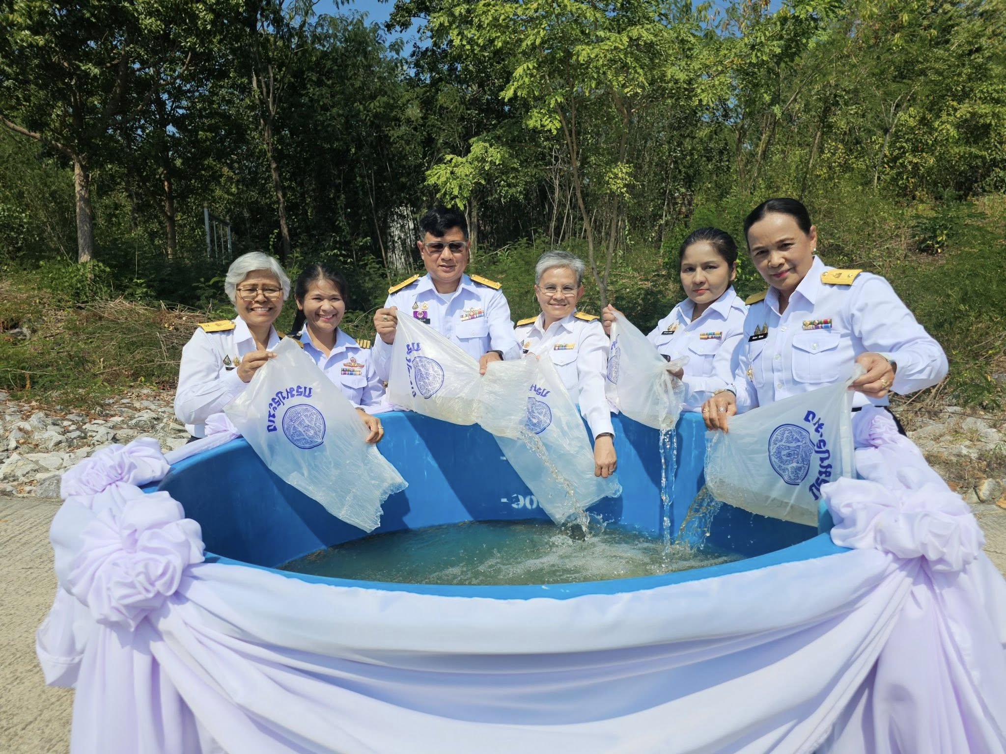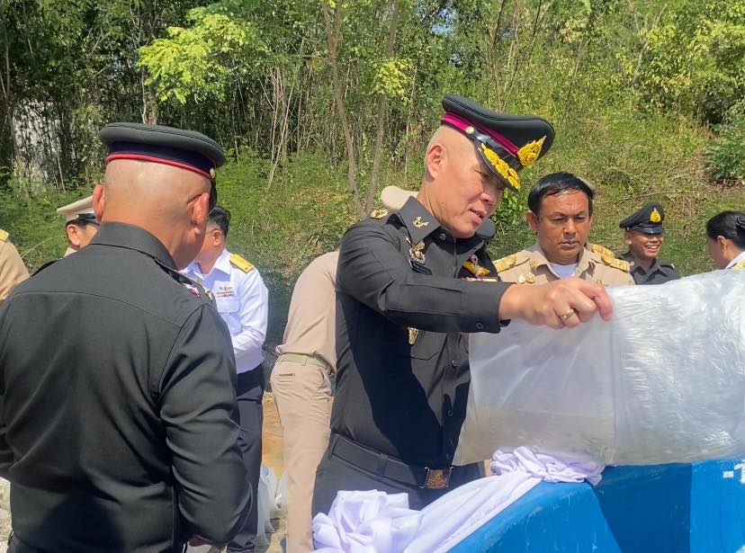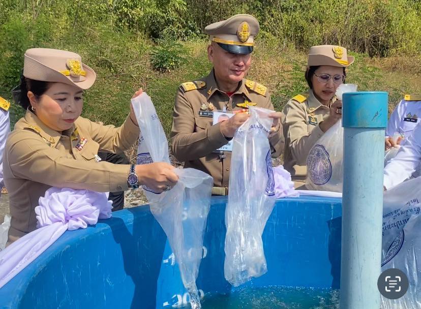 วันที่ 29 ธันวาคม 2568 เวลา 09.30 น. นายอำนาจ จีนขาวขำ ประมงจังหวัดราชบุรี พร้อมด้วยนางสายหยุด ฤทธิ์ช่วย ประมงอำเภอโพธาราม นางสาวจินตนา นิธรรม หัวหน้ากลุ่มบริหารจัดการด้านประมง และเจ้าหน้าที่สำนักงานประมงจังหวัดราชบุรี เข้าร่วมงานวันน้อมรำลึกการก่อตั้งโครงการศูนย์ศึกษาวิธีการฟื้นฟูที่ดินเสื่อมโทรมเขาชะงุ้มอันเนื่องมาจากพระราชดำริ และวันดินโลก ประจำปี 2568 ภายใต้แนวคิด “เขาชะงุ้ม ผืนป่าและแผ่นดินที่พ่อสร้าง” โดยมีพลอากาศเอก จอม รุ่งสว่าง องคมนตี เป็นประธานในพิธี และนางสาวธิติลักษณ์ คำพา ผู้ว่าราชการจังหวัดราชบุรี พร้อมด้วยหัวหน้าส่วนราชการ ร่วมให้การต้อนรับ ณ โครงการศูนย์ศึกษาวิธีการฟื้นฟูที่ดินเสื่อมโทรมเขาชะงุ้ม ตำบลเขาชะงุ้ม อำเภอโพธาราม จังหวัดราชบุรี ในการนี้ สำนักงานประมงจังหวัดราชบุรีได้ร่วมจัดกิจกรรมปล่อยพันธุ์สัตว์น้ำ จำนวน 20,000 ตัว ประกอบด้วย ปลายี่สกไทย จำนวน 200 ตัว และปลาตะเพียนขาว จำนวน 19,800 ตัว เพื่อฟื้นฟูทรัพยากรสัตว์น้ำและระบบนิเวศในพื้นที่ โดยได้รับการสนับสนุนพันธุ์สัตว์น้ำจากศูนย์วิจัยและพัฒนาการเพาะเลี้ยงสัตว์น้ำจืดราชบุรี