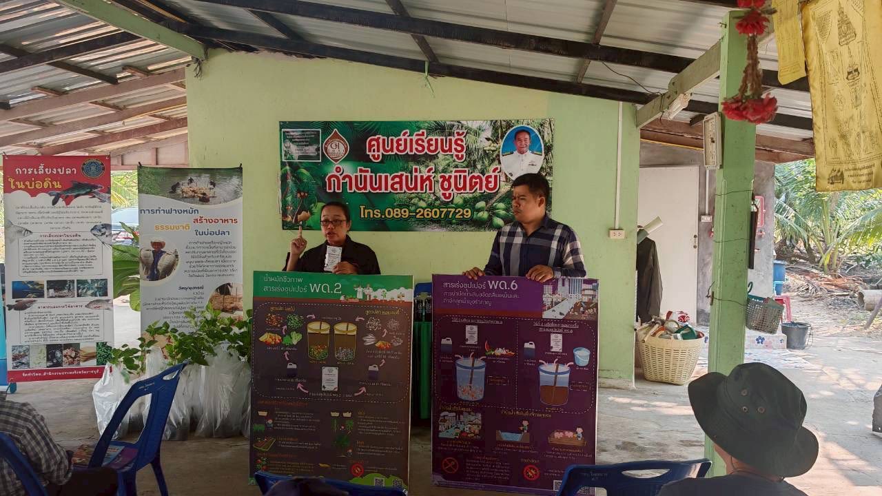 จัดกิจกรรมส่งเสริมองค์ความรู้ด้านต่าง ๆ ให้แก่เกษตรกรที่เข้าร่วมโครงการพัฒนาเกษตรกรรมยั่งยืน กิจกรรมพัฒนาเกษตรทฤษฎีใหม่ อำเภอดำเนินสะดวก