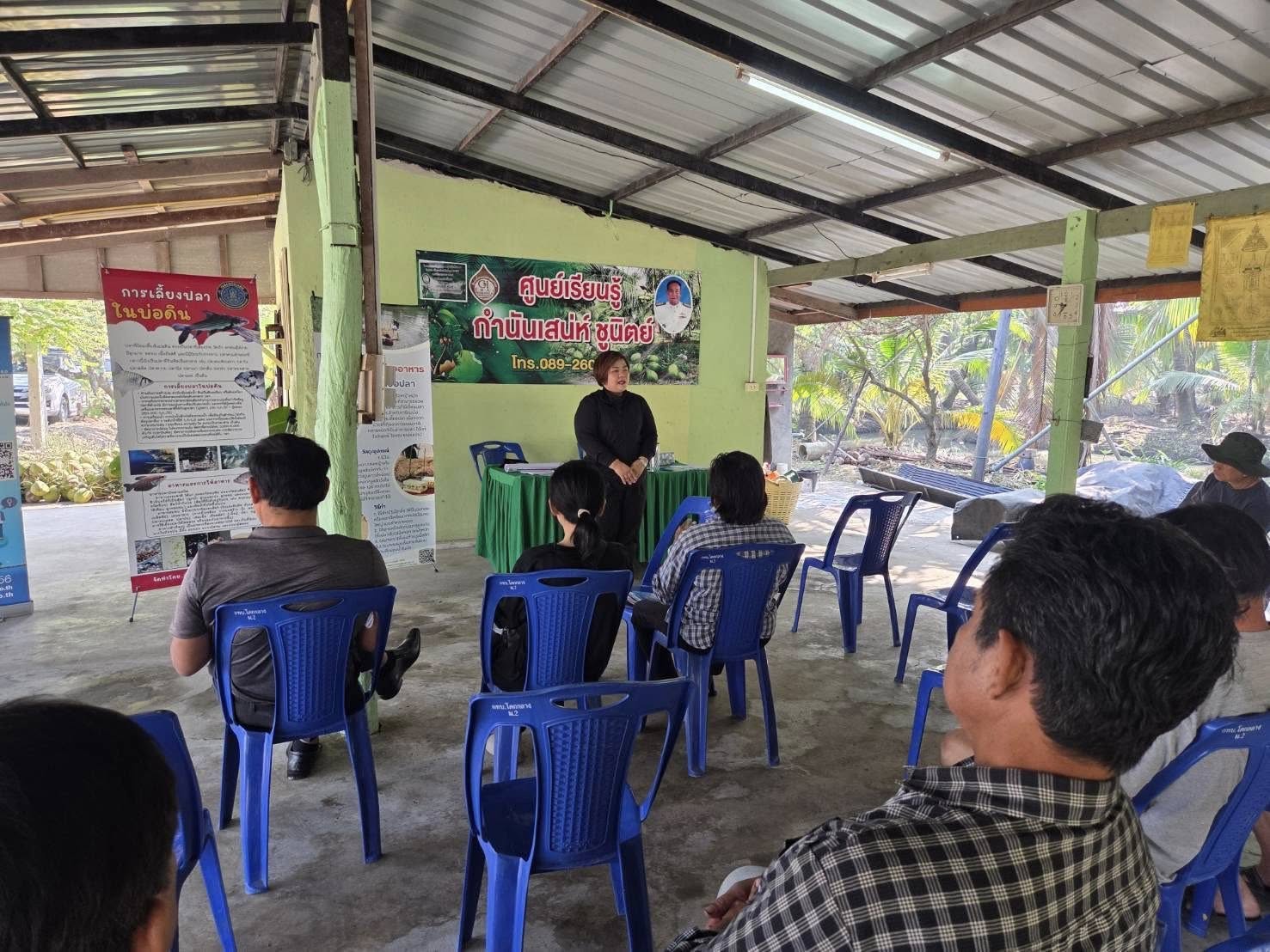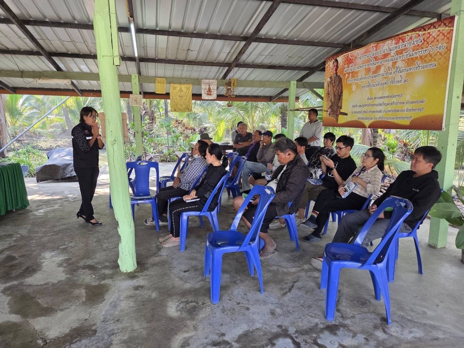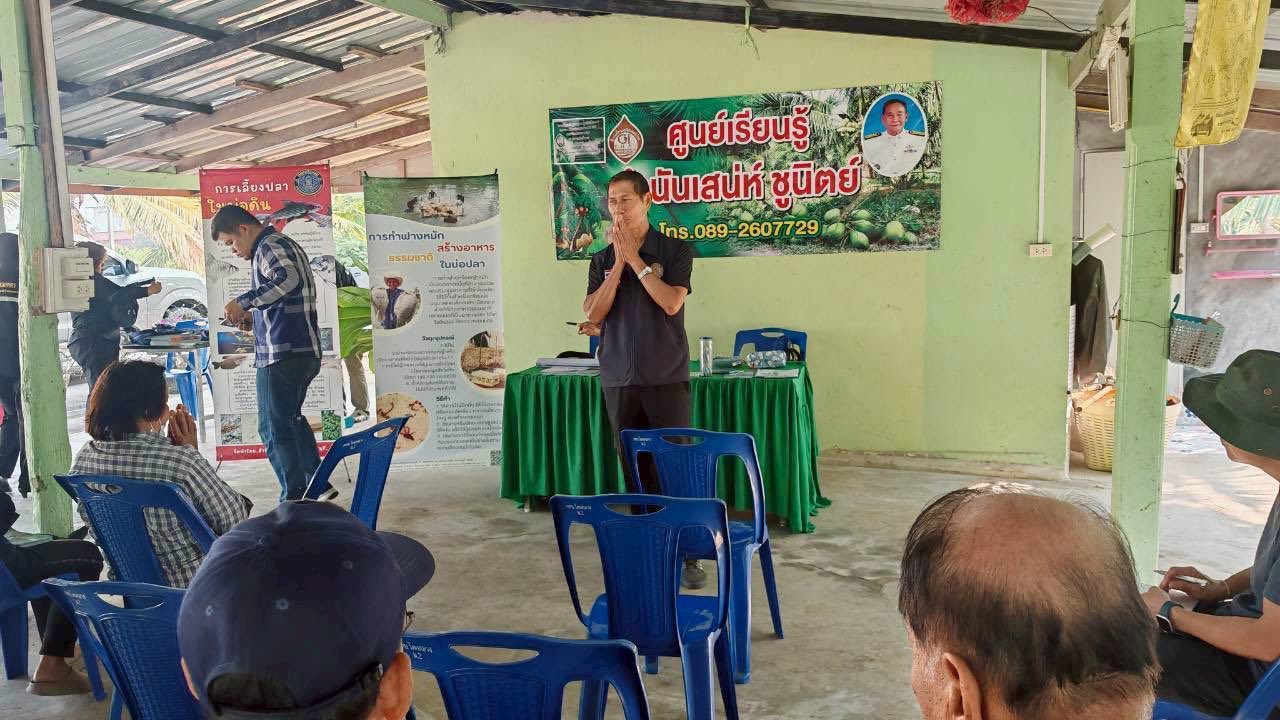 วันที่ 15 มกราคม 2569 เวลา 09.30 น. นายอำนาจ จีนขาวขำ ประมงจังหวัดราชบุรี มอบหมายให้ เจ้าหน้าที่กลุ่มพัฒนาและส่งเสริมอาชีพการประมง พร้อมด้วย นายมณฑล อ่วมเทศ ประมงอำเภอบางแพ (ดูแลงานด้านการประมงอำเภอดำเนินสะดวก) จัดกิจกรรมส่งเสริมองค์ความรู้ด้านต่าง ๆ ให้แก่เกษตรกรที่เข้าร่วมโครงการพัฒนาเกษตรกรรมยั่งยืน กิจกรรมพัฒนาเกษตรทฤษฎีใหม่ จำนวน 20 ราย ร่วมกับเจ้าหน้าที่จากหน่วยงานในสังกัดกระทรวงเกษตรและสหกรณ์ สำนักงานพัฒนาที่ดินจังหวัดราชบุรี สำนักงานตรวจบัญชีสหกรณ์ราชบุรี ศูนย์หม่อนไหมเฉลิมพระเกียรติสมเด็จพระนางเจ้าสิริกิติ์ พระบรมราชินีนาถ กาญจนบุรี (ดูแลพื้นที่จังหวัดราชบุรี) สำนักงานเกษตรอำเภอดำเนินสะดวก โดยให้ความรู้เกี่ยวกับ หลักปรัชญาของเศรษฐกิจพอเพียง หลักสูตรด้านการประมงทั่วไป การเตรียมความพร้อมสู่การรับรองมาตรฐานความปลอดภัย (GAP) การดูแลบำรุงรักษาดิน การปลูก ดูแล รักษา และการใช้ประโยชน์จากต้นหม่อน การจัดทำบัญชีครัวเรือน การขึ้นทะเบียนเกษตรกร (กรมส่งเสริมการเกษตร) ประชาสัมพันธ์การเผาในที่โล่งเพื่อลดมลภาวะ พร้อมทั้งสนับสนุน น้ำหมักชีวภาพ สารเร่ง พด. กิ่งพันธุ์หม่อนกินผล และสมุดบัญชีรับ-จ่ายในครัวเรือน ณ ศูนย์เรียนรู้ด้านการเกษตร กำนันเสน่ห์ ชูนิตย์ หมู่ที่ 2 ตำบลดอนคลัง อำเภอดำเนินสะดวก จังหวัดราชบุรี