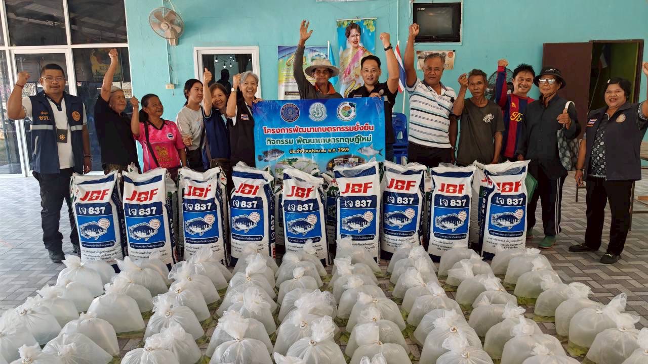 วันที่ 11 กุมภาพันธ์ 2569 เวลา 11.00 น. นายอำนาจ จีนขาวขำ ประมงจังหวัดราชบุรี มอบหมายให้เจ้าหน้าที่กลุ่มพัฒนาและส่งเสริมอาชีพการประมง ร่วมกับ นางอุทุมพร เหมหงษา ประมงอำเภอสวนผึ้ง (ปฏิบัติงานด้านการประมงอำเภอบ้านคา) ส่งมอบปัจจัยการผลิต (ลูกพันธุ์ปลานิล 2,000 ตัว/ราย อาหารปลากินพืช 40 กิโลกรัม/ราย) ให้แก่เกษตรกรที่เข้าร่วมโครงการพัฒนาเกษตรกรรมยั่งยืน กิจกรรมพัฒนาเกษตรทฤษฎีใหม่ จำนวน 9 ราย พร้อมทั้งแนะนำการปล่อยพันธุ์สัตว์น้ำใหม่ลงบ่อดิน และการดูแลพันธุ์ปลาที่ปล่อยใหม่เบื้องต้น ณ ศาลาเอนกประสงค์ หมู่ที่ 5 ตำบลหนองพันจันทร์ อำเภอบ้านคา จังหวัดราชบุรี