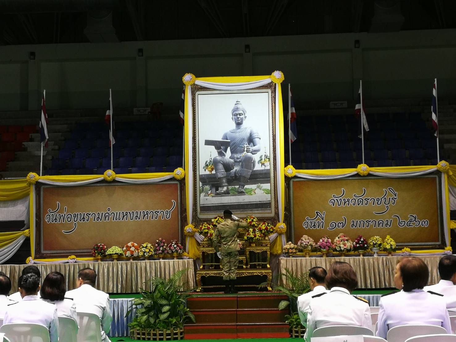 เช้าวันที่ 17 มกราคม 2563 นายประวิทย์ ละออบุตร ประมงจังหวัดราชบุรี มอบหมายให้ นางสาวปิยะพร เพลงสันเทียะ หัวหน้ากลุ่มบริหารและยุทธศาสตร์ พร้อมด้วย ข้าราชการและเจ้าหน้าที่ สำนักงานประมงจังหวัดราชบุรี ร่วมพิธีีวางพานพุ่มถวายราชสักการะ เนื่องในวันพ่อขุนรามคำแหงมหาราช ปี 2563 ณ โรงยิมเนเซียมจังหวัดราชบุรี โดย นายชยาวุธ จันทร ผู้ว่าราชการจังหวัดราชบุรี เป็นประธาน โดยมี ข้าราชการ รัฐวิสาหกิจ ภาคเอกชน และกลุ่มพลังมวลชน ร่วมในพิธีอย่างพร้อมเพรียง เพื่อน้อมรำลึกถึงพระมหากรุณาธิคุณ พ่อขุนรามคำแหงมหาราช เป็นพระมหากษัตริย์ รัชกาลที่ 3 แห่งราชอาณาจักรสุโขทัย ในราชวงศ์พระร่วง เสวยราชย์ตั้งแต่ประมาณพุทธศักราช 1822 ถึงประมาณพุทธศักราช 1841 พระองค์ทรงเป็นกษัตริย์พระองค์แรกของไทยที่ได้รับการยกย่องเป็น “มหาราช” ด้วยทรงบำเพ็ญพระราชกรณียกิจอันทรงคุณประโยชน์แก่แผ่นดิน ทรงรวบรวมอาณาจักรไทยจนเป็นปึกแผ่นกว้างขวาง ทั้งยังได้ทรงประดิษฐ์ตัวอักษรไทยขึ้น ทำให้ชาติไทยได้สะสมความรู้ทางศิลปะ วัฒนธรรม และวิชาการต่าง ๆ สืบทอดกันมากกว่าเจ็ดร้อยปี