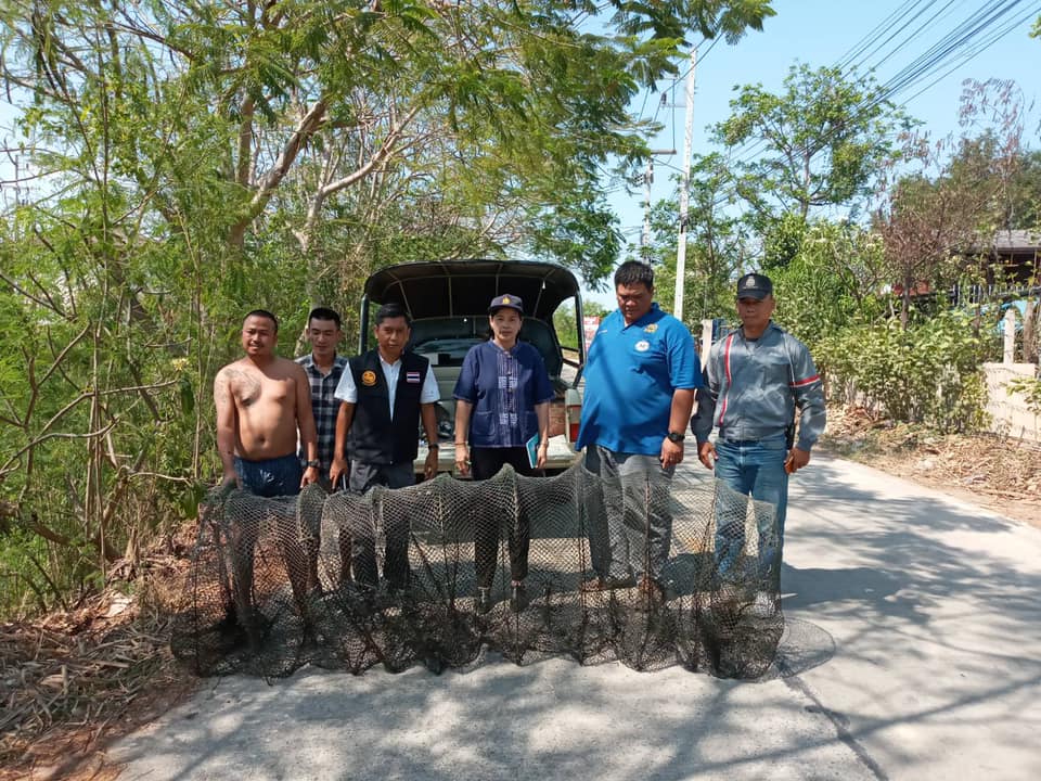 ร่วมลงพื้นที่ตรวจสอบการกางลอบพับได้ (ไอ้โง่) อยู่ในลำคลอง