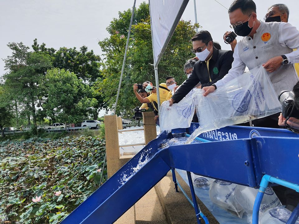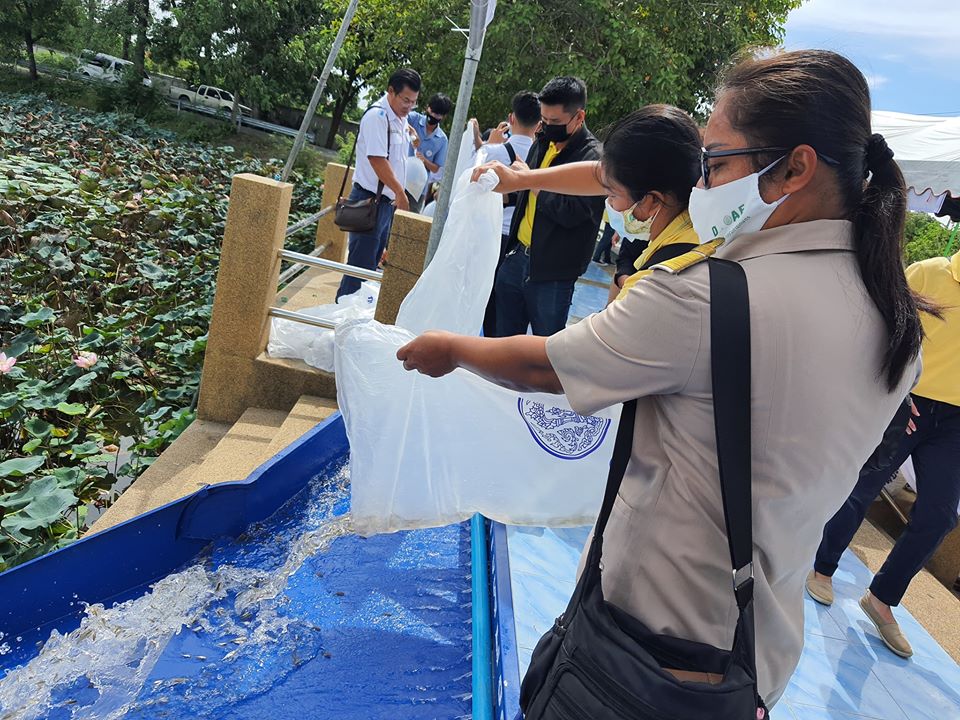 ร่วมจัดกิจกรรมปล่อยพันธุ์สัตว์น้ำเพื่อฟื้นฟูทรัพยากรสัตว์น้ำในบึงกระจับ