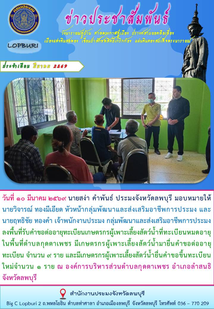สงวนลิขสิทธิ์ พ.ศ.2569 สำนักงานประมงจังหวัดลพบุรี