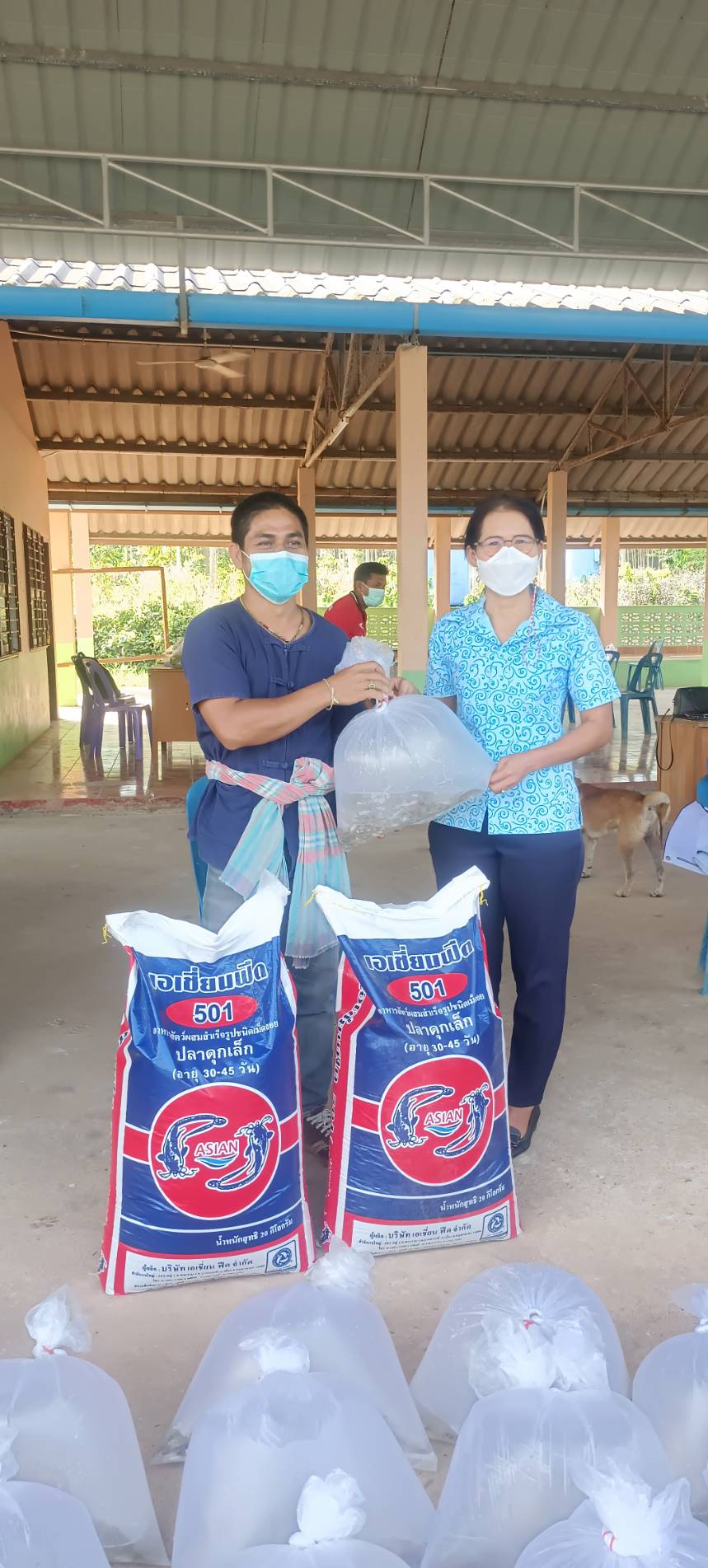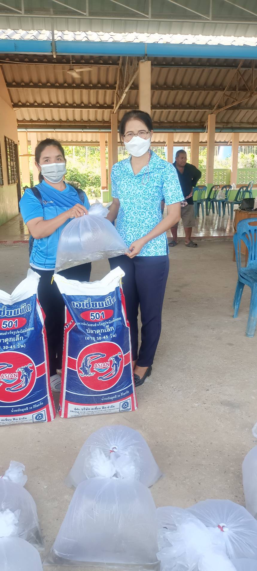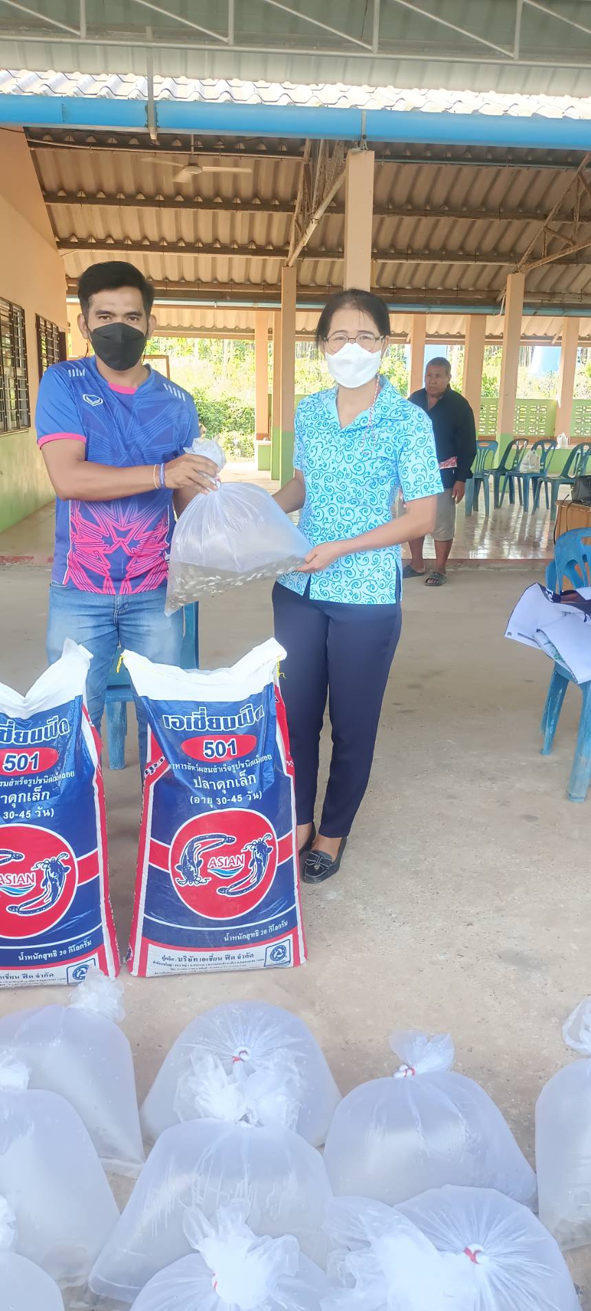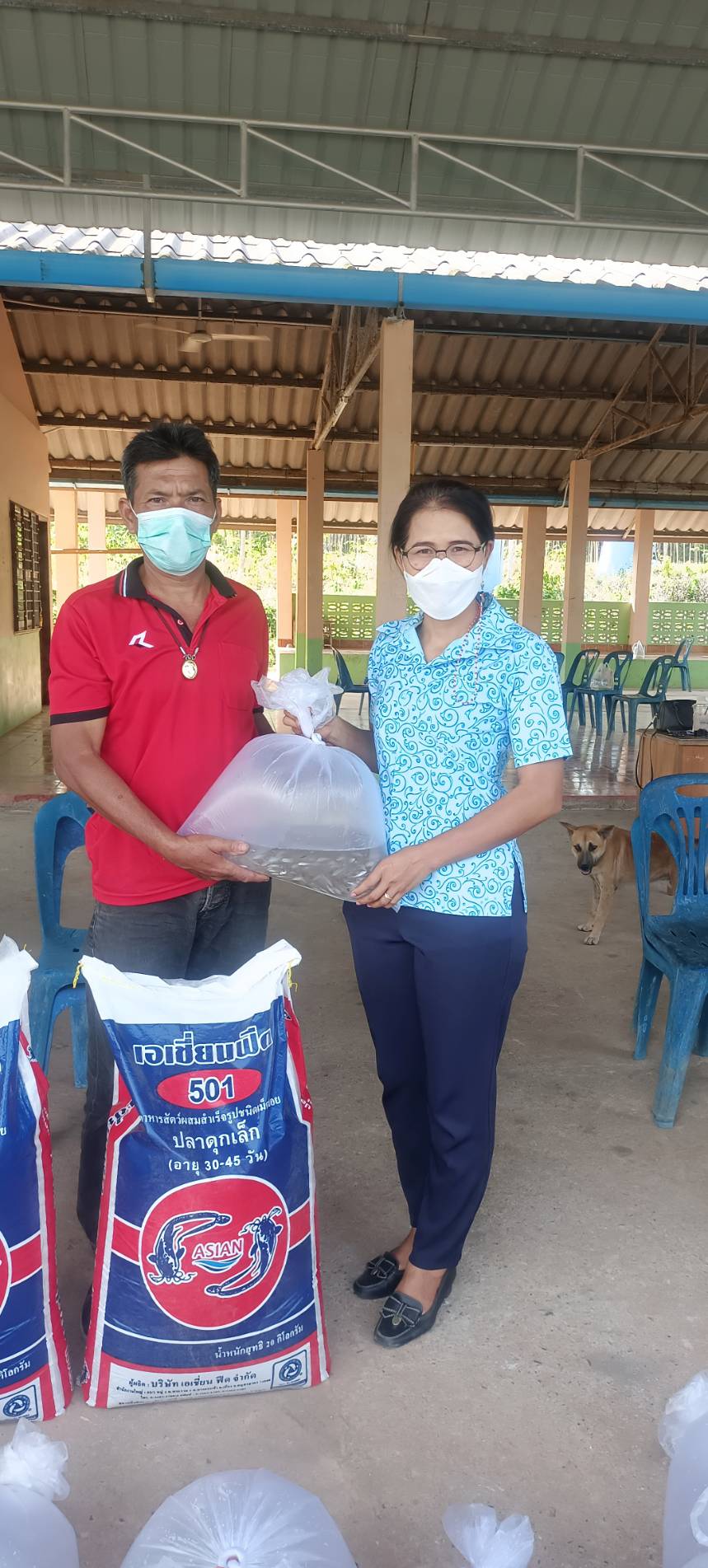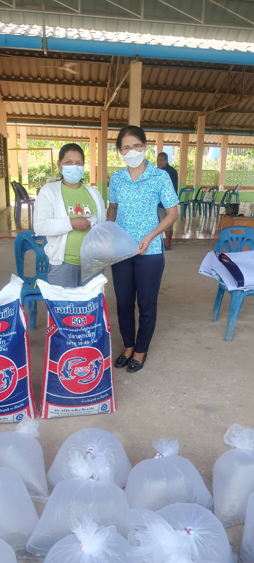 วันที่ 28 มกราคม 2565 นายภูษิต  จันทร์เพชร ประมงจังหวัดพัทลุง มอบหมายให้นางสาวบุศรา  ชุมเชื้อ ประมงอำเภอป่าบอน พร้อมด้วยนายวายุพัฒน์ เดชอนันต์ ณ พัทลุง เจ้าหน้าที่วิเคราะห์นโยบายและแผน และเจ้าหน้าที่ฯ จัดอบรมโครงการส่งเสริมอาชีพประมง กิจกรรมส่งเสริมเกษตรทฤษฎีใหม่ด้านการประมง ประจำปีงบประมาณ พ.ศ. 2565 โดยมีเกษตรกรผู้เข้าร่วมอบรมจำนวน 15 ราย โดยส่งเสริมความรู้ด้านการประมง การเลี้ยงปลากินพืช การสร้างอาหารธรรมชาติ การผลิตอาหารโดยใช้วัสดุท้องถิ่น และเกษตรทฤษฎีใหม่ พร้อมสนับสนุนพันธุ์  ปลาตะเพียนจำนวน 920 ตัว/ราย และอาหารสำเร็จรูปจำนวน 1 กระสอบ ๆ ละ 20 กก./ราย ณ ที่ทำการหมู่ที่ 6 บ้านควนเพ็ง ตำบลโคกทราย อำเภอป่าบอน จังหวัดพัทลุง