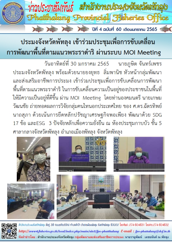 ประมงจังหวัดพัทลุง เข้าร่วมประชุมเพื่อการขับเคลื่อนการพัฒนาพื้นที่ตามแนวพระราชดำริ ผ่านระบบ MOI Meeting..คลิก