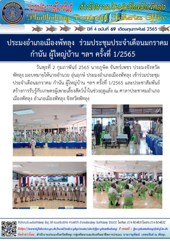 ประมงอำเภอเมืองพัทลุง ร่วมประชุมประจำเดือนมกราคม กำนัน ผู้ใหญ่บ้าน ฯลฯ ครั้งที่ 1/2565
