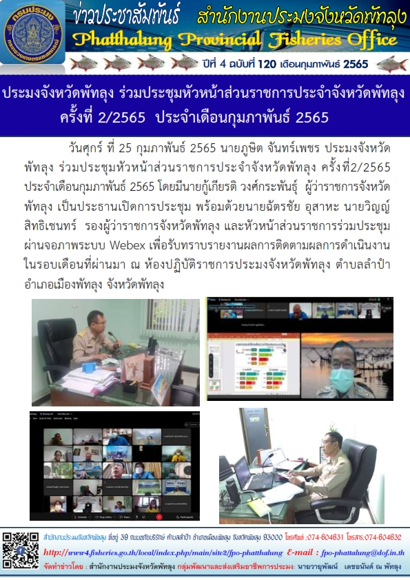 ประมงจังหวัดพัทลุง ร่วมประชุมหัวหน้าส่วนราชการจังหวัดพัทลุง ครั้งที่ 2/2565 ประจำเดือนกุมภาพันธ์ 2565