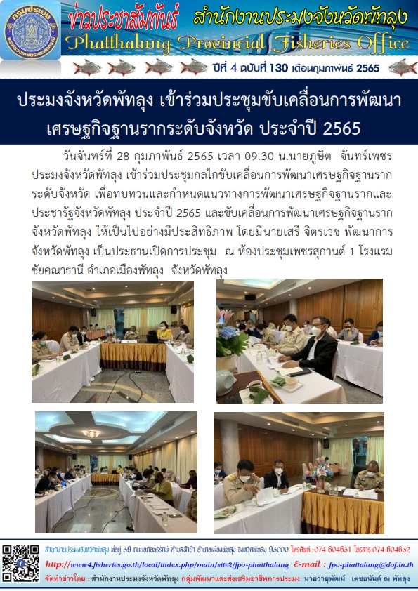 ประมงจังหวัดพัทลุง เข้าร่วมประชุมขับเคลื่อนการพัฒนาเศรษฐกิจฐานรากระดับจังหวัด ประจำปี 2565