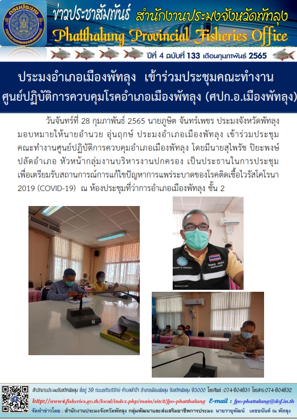 ประมงอำเภอเมืองพัทลุง เข้าร่วมประชุมคณะทำงานศูนย์ปฏิบัติการควบคุมโรคอำเภอเมืองพัทลุง(ศปก.อ.เมือง)