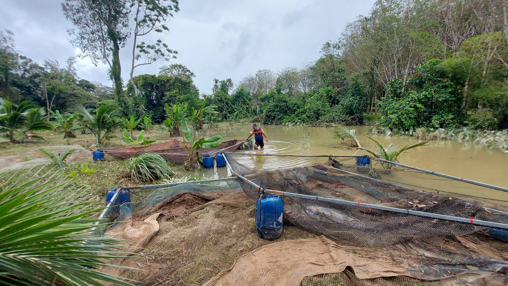 ประมงอำเภอตะโหมด ลงพื้นที่ติดตามสถานการณ์น้ำท่วมกระชังของเกษตรกรในพื้นที่อำเภอตะโหมด