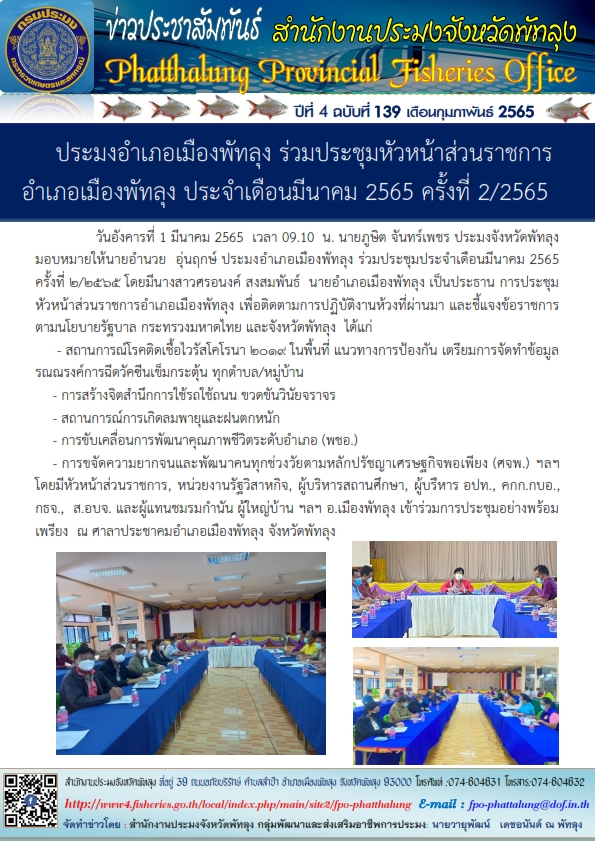 ประมงอำเภอเมืองพัทลุง ร่วมประชุมหัวหน้าส่วนราชการ อำเภอเมืองพัทลุง ประจำเดือนมีนาคม 2565 ครั้งที่ 2/2565