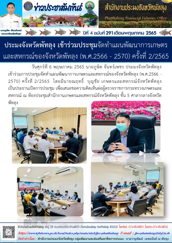 ประมงจังหวดัพัทลุง เข้าร่วมประชุมจัดทำแผนพัฒนาการเกษตร  และสหกรณ์ของจังหวัดพัทลุง (พ.ศ.2566 - 2570) ครั้งที่ 2/2565..คลิก