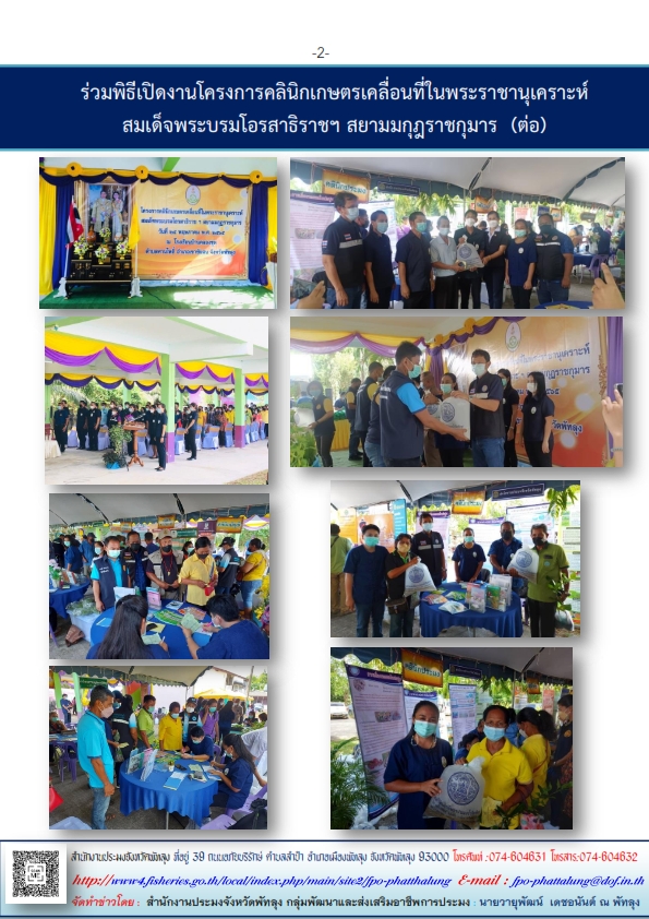 สำนักงานประมงจังหวัดพัทลุง ร่วมพิธีเปิดงานโครงการคลินิกเกษตรเคลื่อนที่ในพระราชานุเคราะห์ สมเด็จพระบรมโอรสาธิราชฯสยามมกุฎราชกุมาร..คลิก