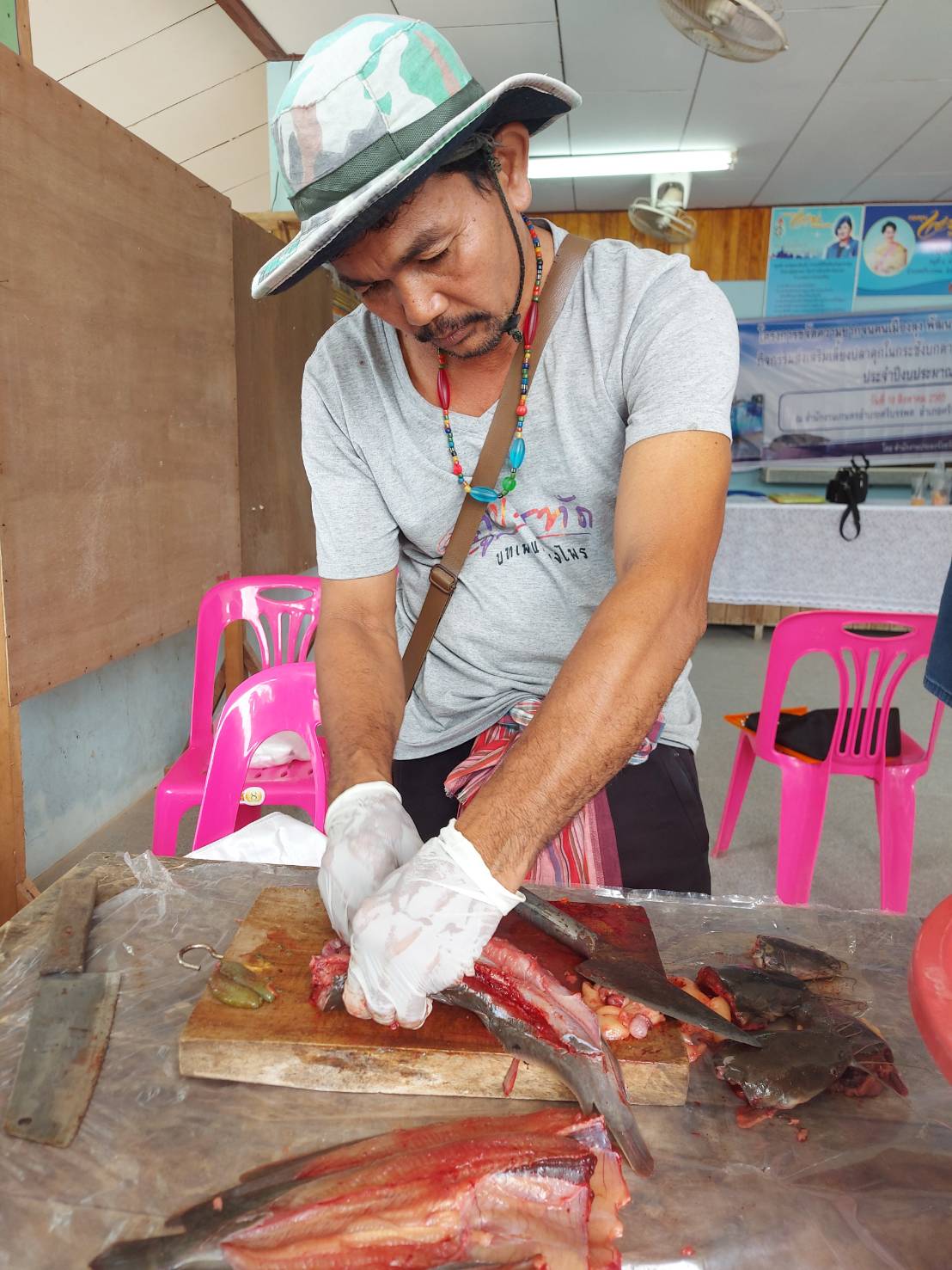 วันศุกร์ที่ 18 สิงหาคม 2565 เว 09.00 .ภูษิต จันทร์เพชร ประมงจังหวัดพัทลุง มอบหมายให้นางมัณฑนา สุขเกษม เจ้าพนักงานประมงปฏิบัติงาน บัติ หน้าที่ประมงอาเภอป่าพะยอม ร้อมด้วยเจ้าหน้าที่สานักงานประมง จังหวัดพัทลุง จัดอบรม โครงการขจัดความยากจนคนเมืองลุง พัฒนาคุณภาพชีวิตตามระบบ TPMAP กิจกรรมส่งเสริม การเลี้ยงปลาดุกในกระชังบกตามหลักปรัชญาเศรษฐกิจพอเพียง ปีงบประมง 2565 ลักสูตร การเลี้ยงปลาดุกในกระชังบกและการแปรรูปปลาดุกเพื่อการถนอมอาหารและเพิ่ม มูลค่า าน 9 มู่บ้านป่าตอ มู่ที่8 ตาบลปู่ อารีบรรพต จังหวัดพัทลุง