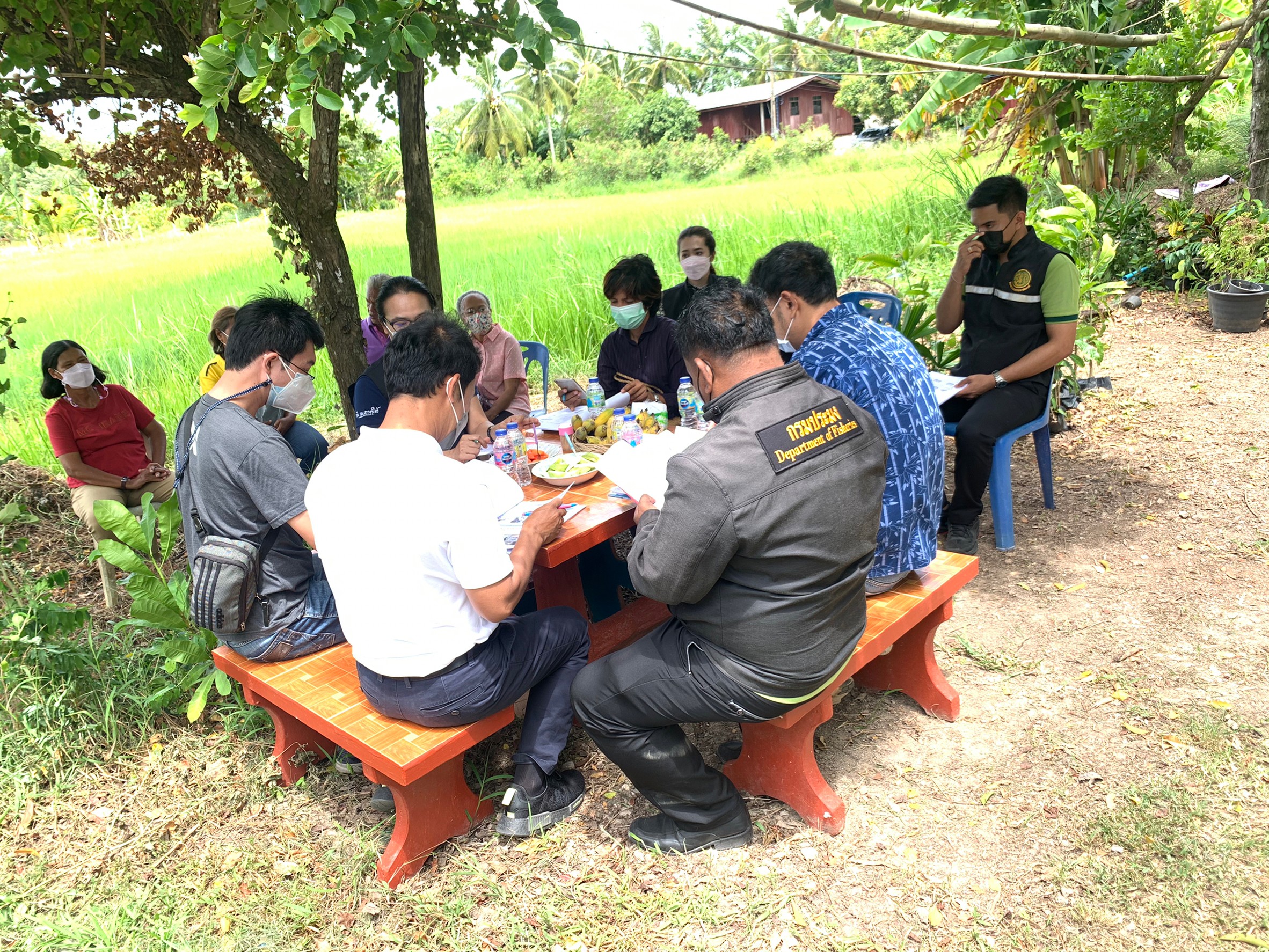 กลุ่มพัฒนาและส่งเสริมอาชีพการประมง ลงพื้นที่ติดตามแปลงของ นายมารุต บุญสนิท ของสมาชิกกลุ่มวิสาหกิจชุมชนเกษตรทฤษฎีใหม่ชัยบุรี