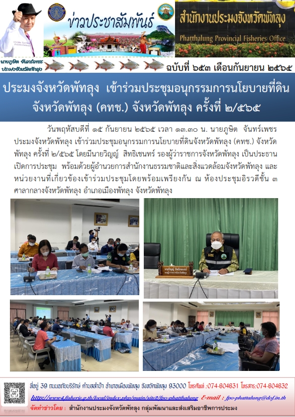 ประมงจังหวัดพัทลุง  เข้าร่วมประชุมอนุกรรมการนโยบายที่ดินจังหวัดพัทลุง (คทช.) จังหวัดพัทลุง ครั้งที่ 2/565..คลิก