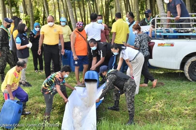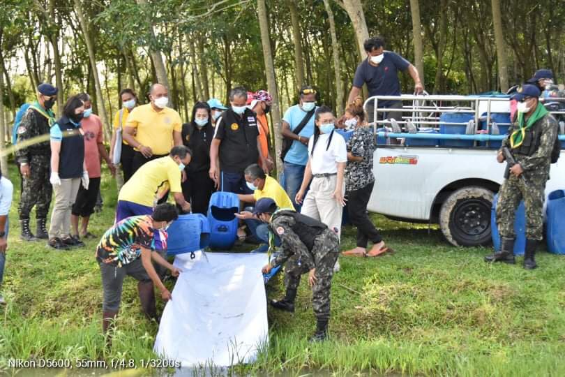 วันที่ 2 กรกฎาคม 2564 นายสมปอง แสงทอง ประมงจังหวัดยะลา ร่วมกับนายอำเภอเมืองยะลา ประมงอำเภอเมืองยะลา และเจ้าหน้าที่สำนักงานประมงจังหวัดยะลา ร่วมปล่อยพันธุ์กุ้งก้ามกราม จำนวน 100,000 ตัว ณ สระน้ำบ่อจีน หมู่ที่ 1 ตำบลยุโป อำเภอเมืองยะลา จังหวัดยะลา ตามโครงการตำบลมั่นคง มั่งคั่ง ยั่งยืน ในจังหวัดชายแดนภาคใต้ ประจำปีงบประมาณ พ.ศ. 2564 กิจกรรมฟื้นฟูทรัพยากรสัตว์น้ำพื้นที่พิเศษ