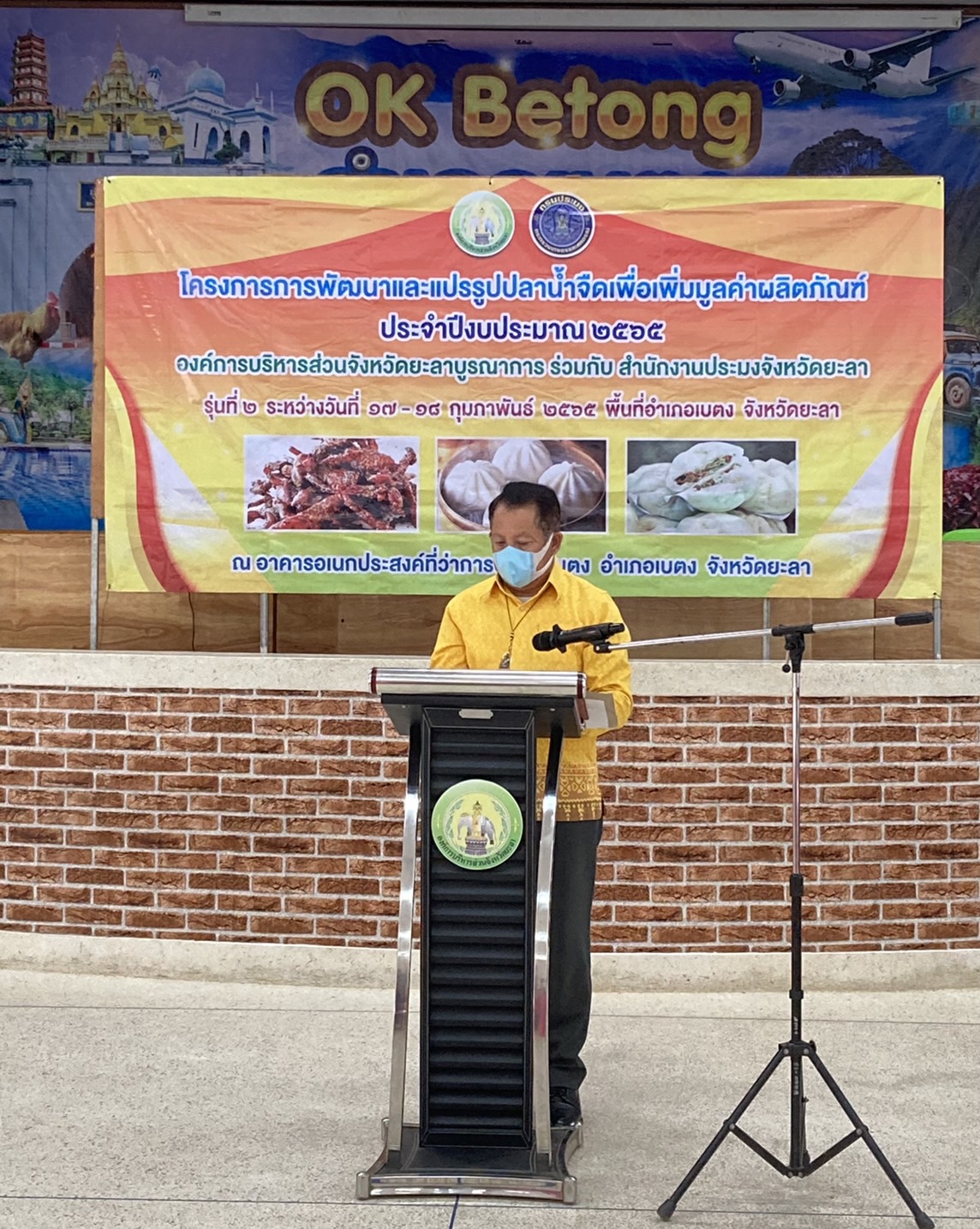 วันที่ 17 กุมภาพันธ์ 2565 นายสมปอง เเสงทอง ประมงจังหวัดยะลา มอบหมายให้ เจ้าหน้าที่กลุ่มพัฒนาและส่งเสริมอาชีพการประมง เข้าร่วมดำเนินการจัดฝึกอบรมในโครงการ การพัฒนาและแปรรูปปลาน้ำจืดเพื่อเพิ่มมูลค่าผลิตภัณฑ์ บูรณาการร่วมกับสำนักปลัดองค์การบริหารส่วนจังหวัดยะลา ประจำปีงบประมาณ 2565 รุ่นที่ 2 (อำเภอเบตง) โดยมีนายเฉลิมพล เรืองเริงกุลฤทธิ์ รองนายกองค์การบริหารส่วนจังหวัดยะลา เป็นประธานในพิธีเปิดโครงการดังกล่าว ซึ่งมีเกษตรกรเข้าร่วมฝึกอบรมจำนวน 50 ราย ณ ที่ทำการอำเภอเบตง จ.ยะลา การฝึกอบรมครั้งนี้ปฏิบัติตามมาตรการของศบค.จังหวัดยะลาอย่างเคร่งครัด