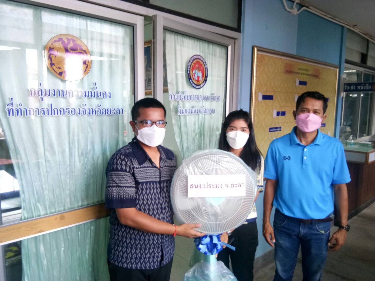 วันที่ 18 กุมภาพันธ์ 2565 นายสมปอง แสงทอง ประมงจังหวัดยะลา มอบหมายให้นางสาวพรกมล หนูจันทร์ หัวหน้ากลุ่มบริหารและยุทธศาสตร์ พร้อมด้วยเจ้าหน้าที่สำนักงานประมงจังหวัดยะลา นำของรางวัลมอบสนับสนุนให้กับสมาชิกกองอาสารักษาดินแดน เพื่อเป็นขวัญและกำลังในการปฏิบัติหน้าที่ ณ อาคาร 1 ชั้น 2 ศาลากลางจังหวัดยะลา