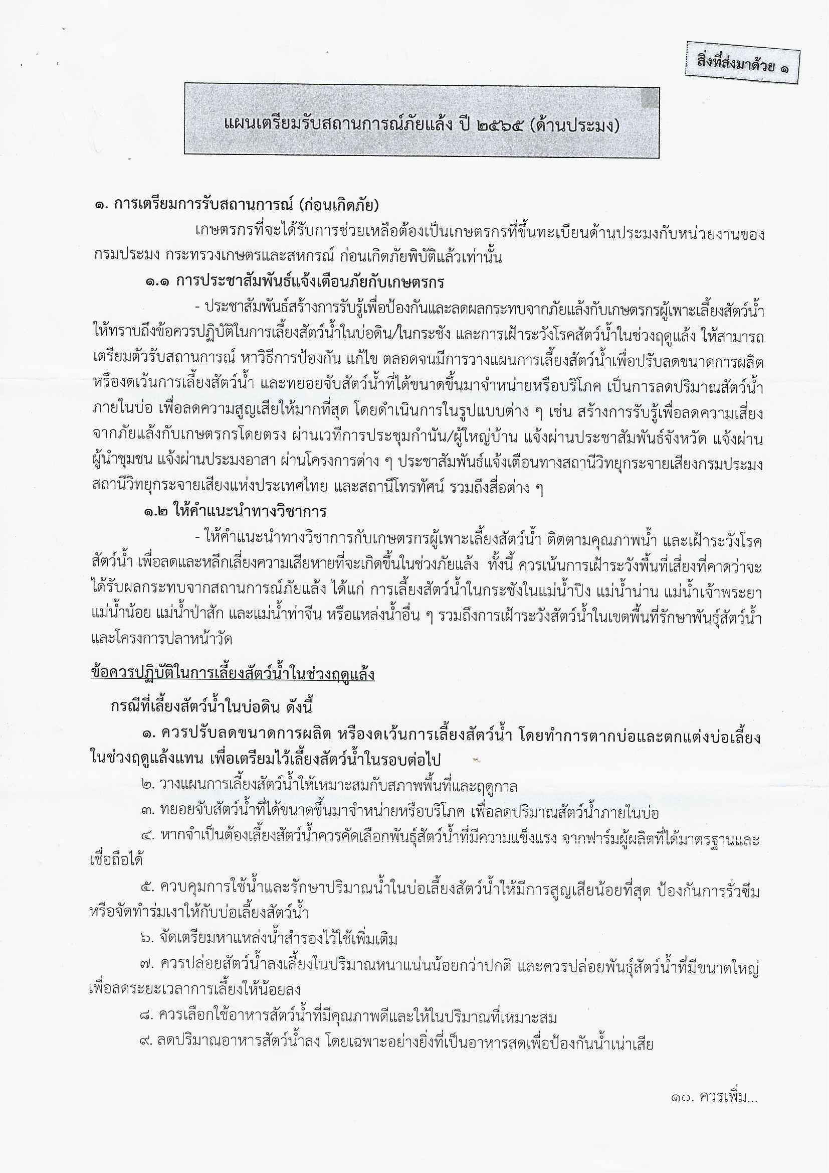 ประชาสัมพันธ์แผนเตรียมรับสถานการณ์ภัยแล้ง ปี 2565 (ด้านการประมง)..คลิก