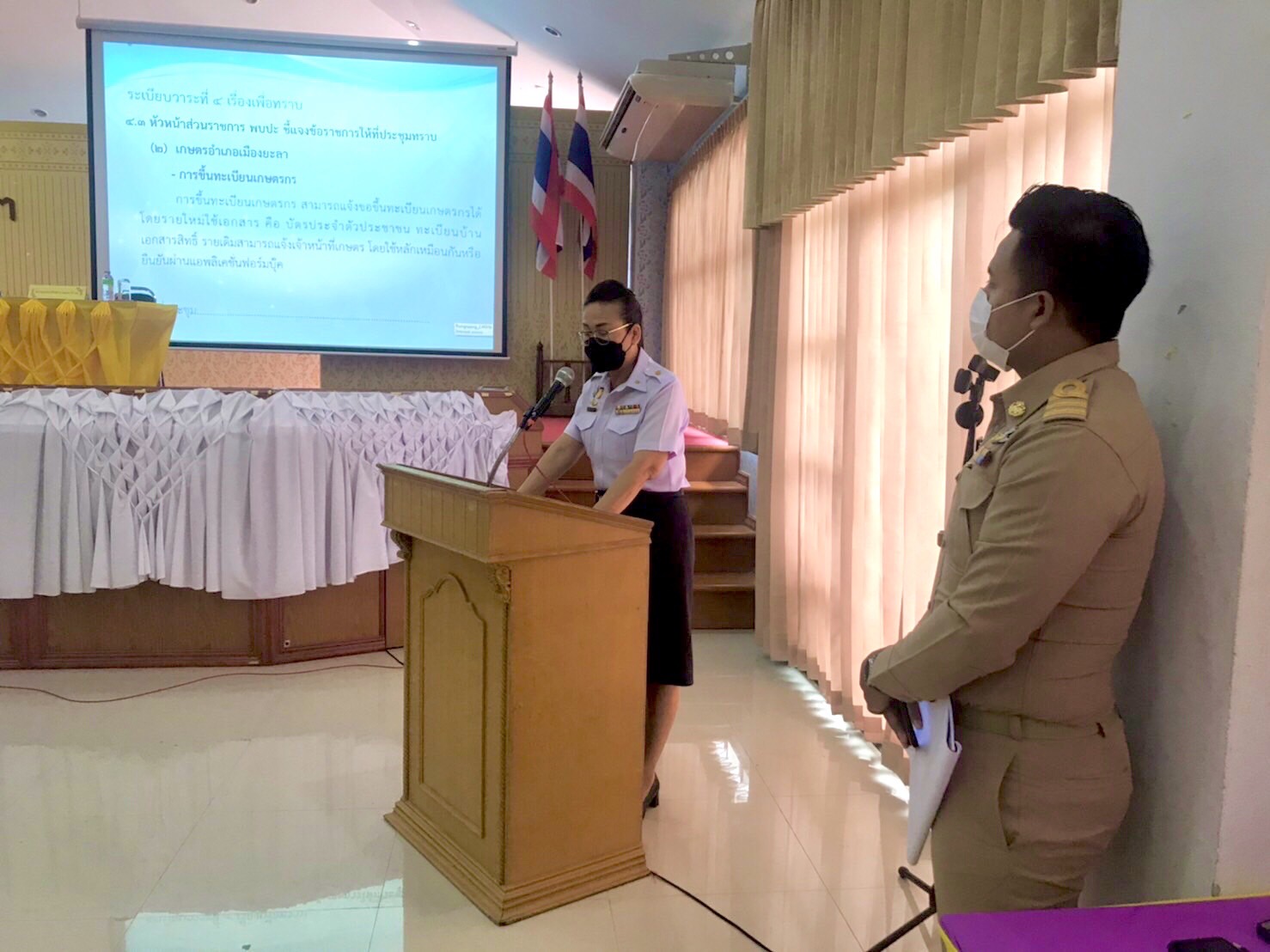 วันที่ 9 มีนาคม 2565 นางบุษราคัม หมื่นสา ประมงอำเภอเมืองยะลา เข้าร่วมประชุมกำนัน ผู้ใหญ่บ้านอำเภอเมืองยะลา ประจำเดือนมีนาคม 2565 และชี้แจงเรื่องการให้ความช่วยเหลือเกษตรกรที่ประสบภัยพิบัติด้านประมง เพื่อเป็นแนวทางในการปฏิบัติงานสำหรับกำนัน ผู้ใหญ่บ้านกับเกษตรกรผู้เพาะเลี้ยงสัตว์น้ำต่อไป