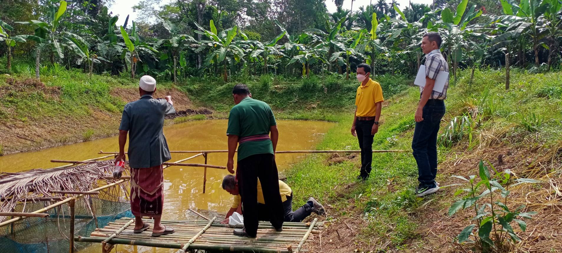 วันที่ 13 กุมภาพันธ์  2566  นางสาวขวัญชนก ขวัญเพ็ชร์ เจ้าพนักงานประมงชำนาญ พร้อมด้วยนายอุแกน แก้วหวาน เจ้าพนักงานประมง ร่วมกับเจ้าหน้าที่จากศูนย์วิจัยและพัฒนาประมงน้ำจืดยะลา ตรวจประเมินฟาร์มของเกษตรกรที่เข้าร่วมโครงการยกระดับคุณภาพมาตรฐานสินค้าเกษตร กิจกรรมพัฒนาคุณภาพสินค้าประมงสู่มาตรฐาน ประเภทมาตรฐานการเพาะเลี้ยงสัตว์น้ำทีดี (GAP) ประจำปีงบประมาณ 2566  ในเขตตำบลปุโรง  อำเภอกรงปินัง จังหวัดยะลา จำนวน 1 ฟาร์ม และมอบปัจจัยการผลิต (พันธุ์ปลาและอาหารปลา) แก่เกษตรกรที่เข้าร่วมโครงการพัฒนาตามศักยภาพในพื้นที่ ประจำปีงบประมาณ พ.ศ. 2566 ณ องค์การบริหารส่วนตำบลกรงปินัง ตำบลกรงปินัง อำเภอกรงปินัง จังหวัดยะลา จำนวน 5 ราย