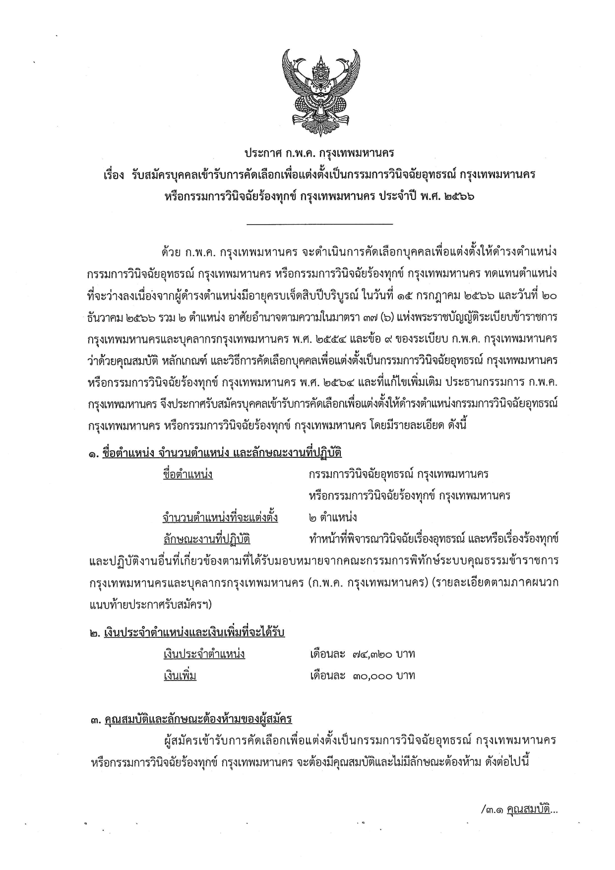 ประกาศรับสมัครบุคคลเข้ารับการคัดเลือกเพื่อแต่งตั้งเป็นกรรมการวินิจฉัยอุทธรณ์ กรุงเทพมหานคร