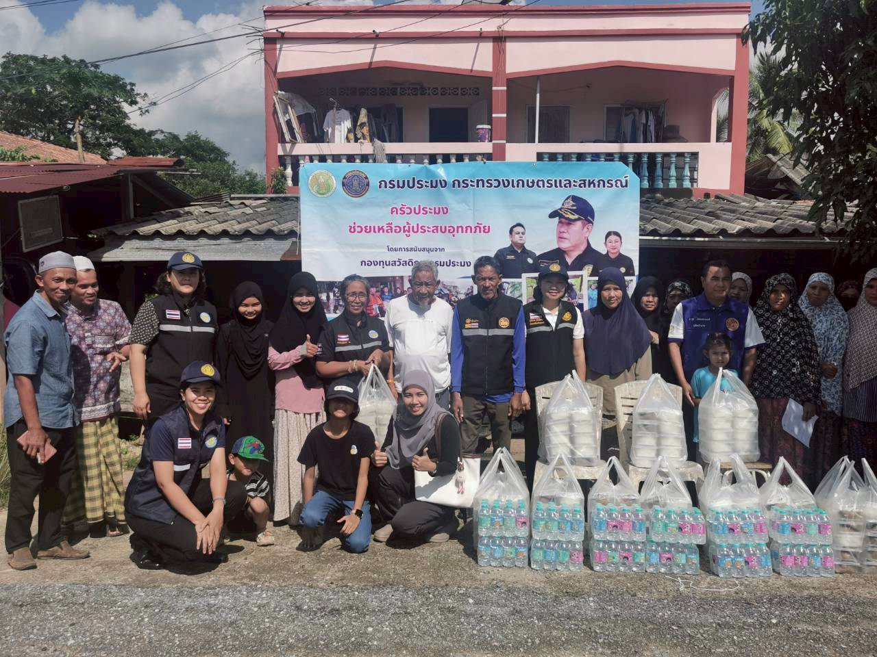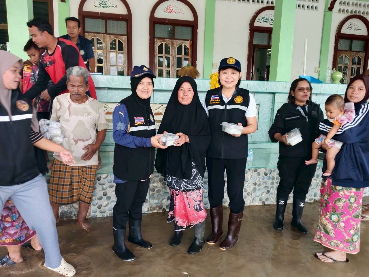 นางจุไลวรรณ รุ่งกำเนิดวงศ์ ประมงจังหวัดยะลา พร้อมด้วยเจ้าหน้าที่สำนักงานประมงจังหวัดยะลา มอบอาหารปรุงสำเร็จ พร้อมน้ำดื่มจำนวน 700 ชุด เพื่อช่วยเหลือให้แก่ผู้ประสบภัยน้ำท่วม พร้อมเยี่ยมเยี่ยนให้กำลังใจผู้นำชุมชน ประชาชนในพื้นที่ที่ยังมีน้ำท่วมขังของอำเภอเมืองยะลา อำเภอรามัน อำเภอยะหา จังหวัดยะลา “โดยได้รับการสนับสนุนจากกองทุนสวัสดิการกรมประมง”