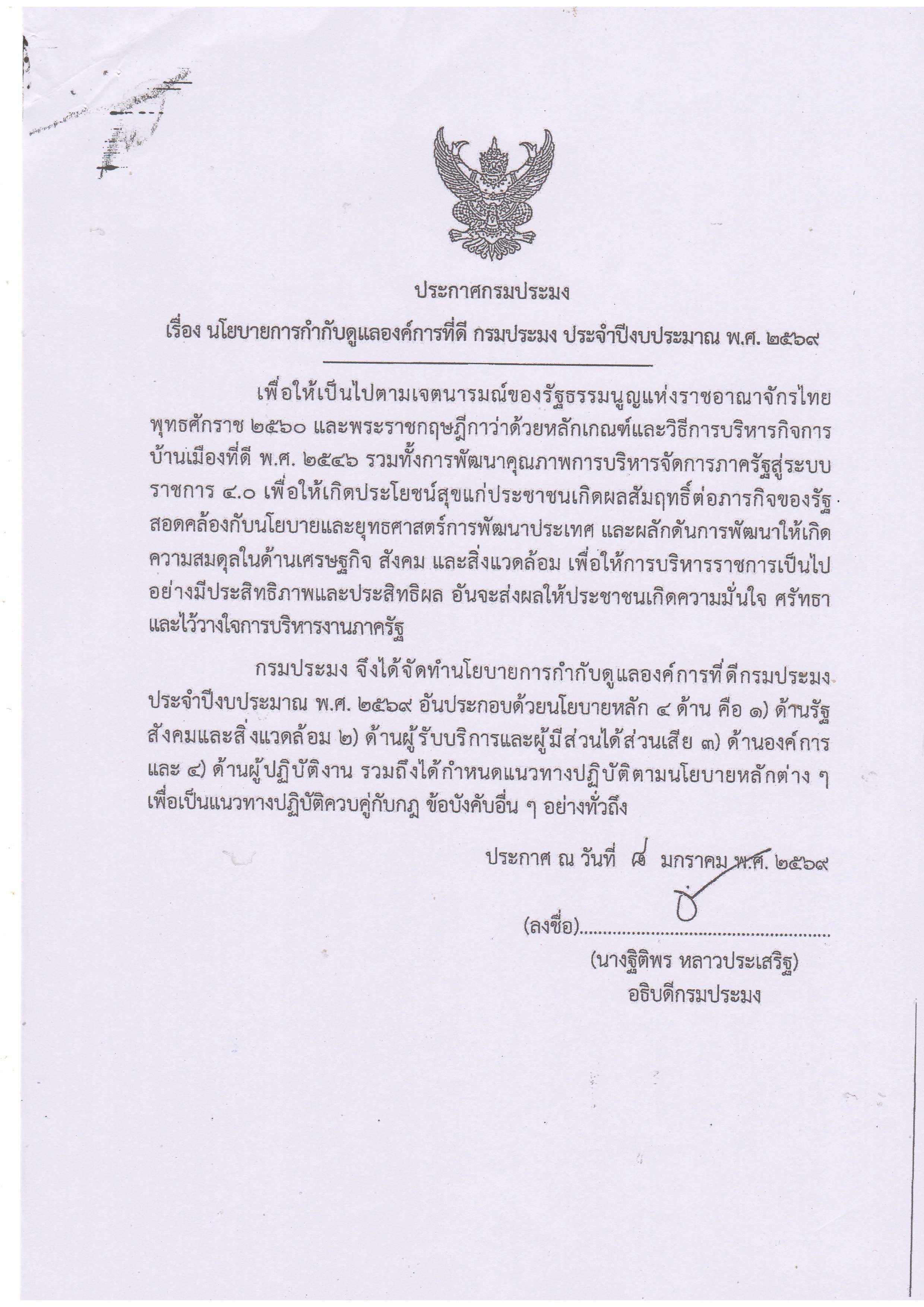 ประกาศกรมประมง เรื่อง นโยบายการกำกับดูแลองค์การที่ดี กรมประมง ประจำปีงบประมาณ พ.ศ. 2569