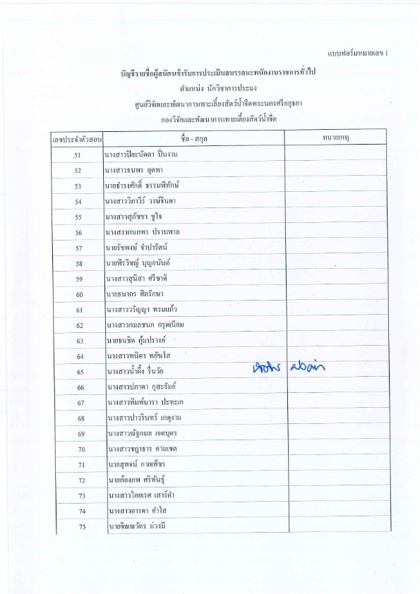 ประกาศ ศูนย์วิจัยและพัฒนาการเพาะเลี้ยงสัตว์น้ำจืดพระนครศรีอยุธยา เรื่อง รายชื่อผู้มีสิทธิ์เข้ารับการประเมินสมรรถนะ กำหนดวัน เวลา สถานที่ในการประเมินสมรรถนะ ตำแหน่งนักวิชาการประมง