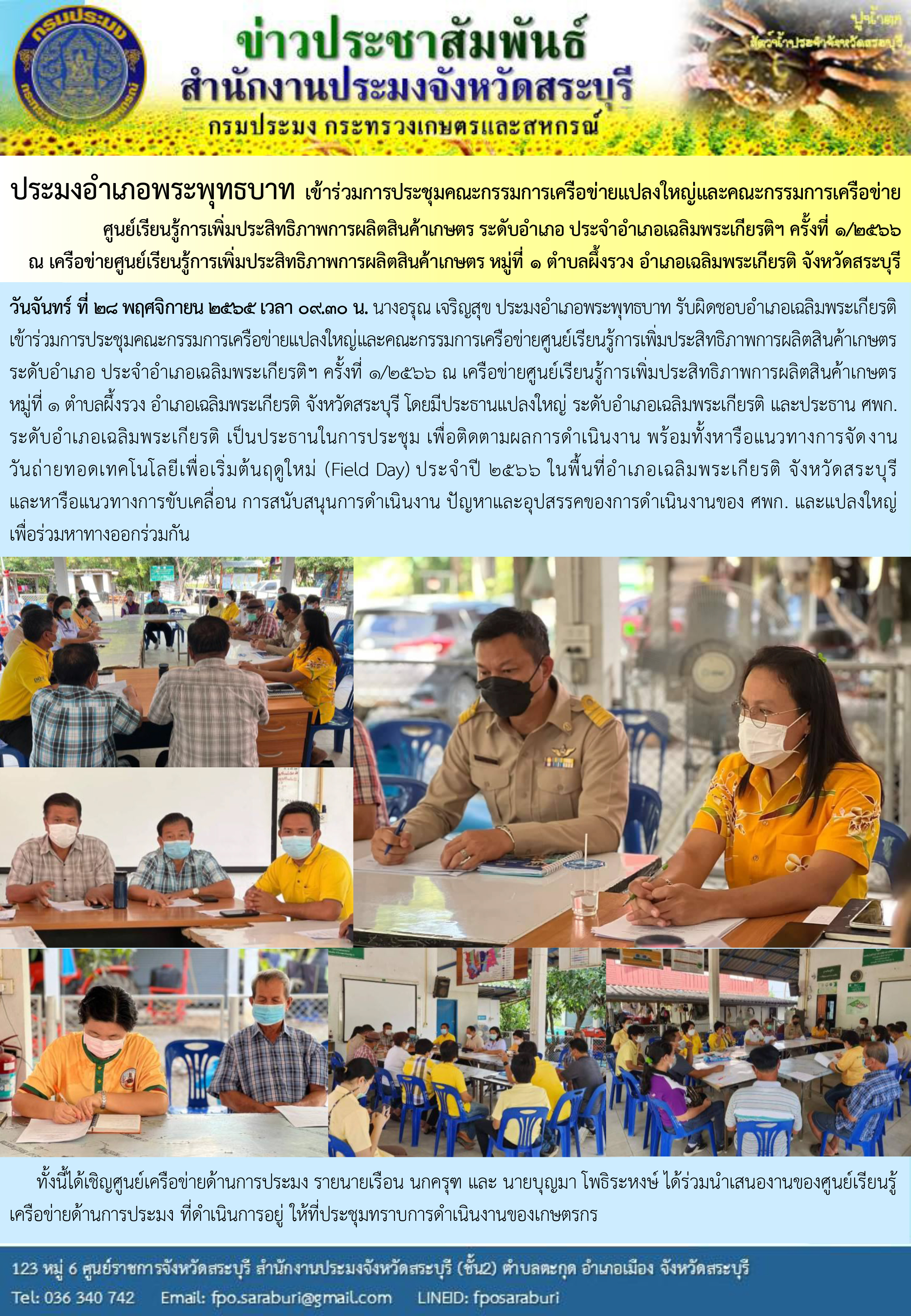 ภารกิจประจำวันที่ 28 พฤศจิกายน 2565 สำนักงานประมงจังหวัดสระบุรี