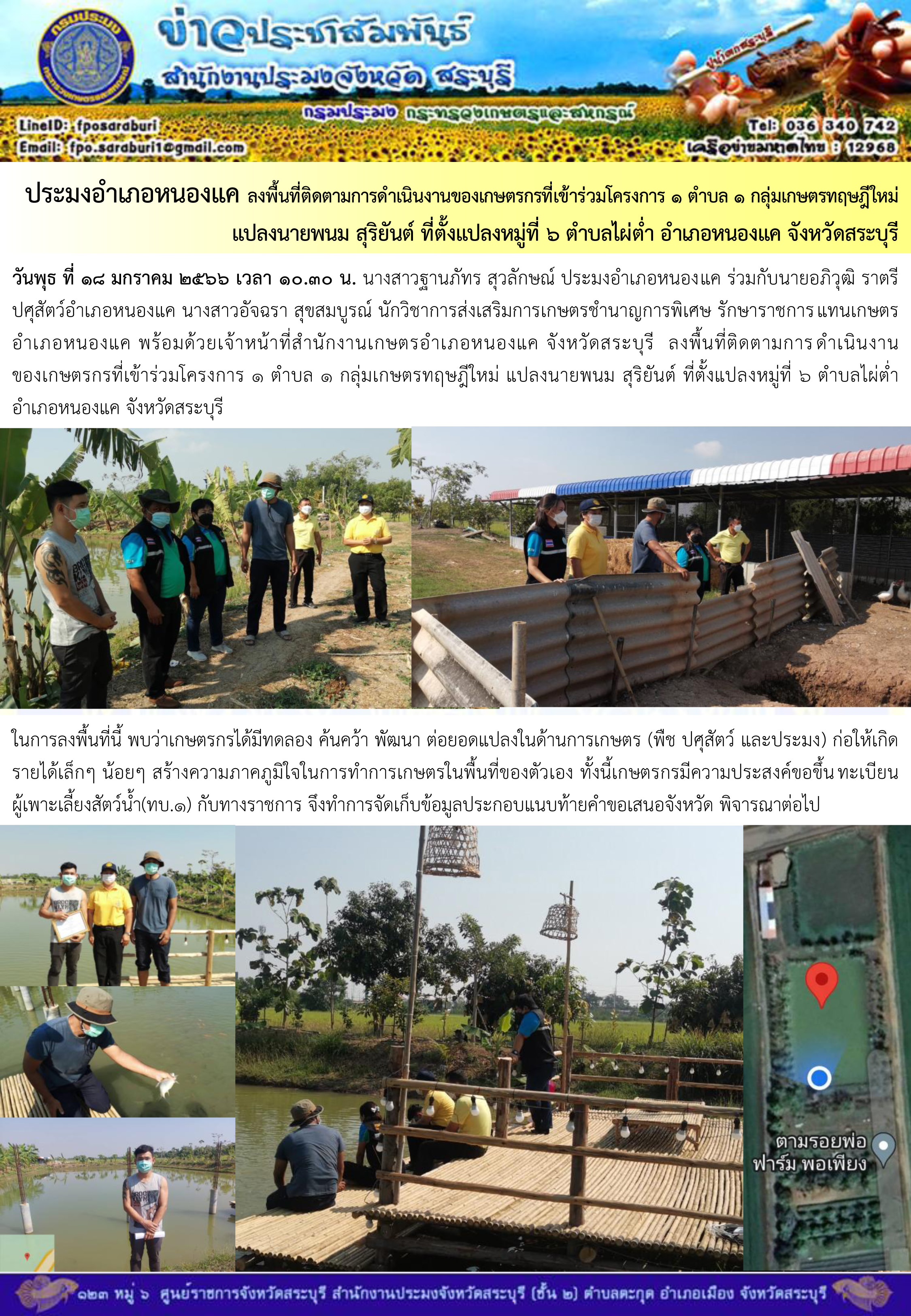 ภารกิจประจำวันที่ 18 มกราคม 2566 สำนักงานประมงจังหวัดสระบุรี..คลิก