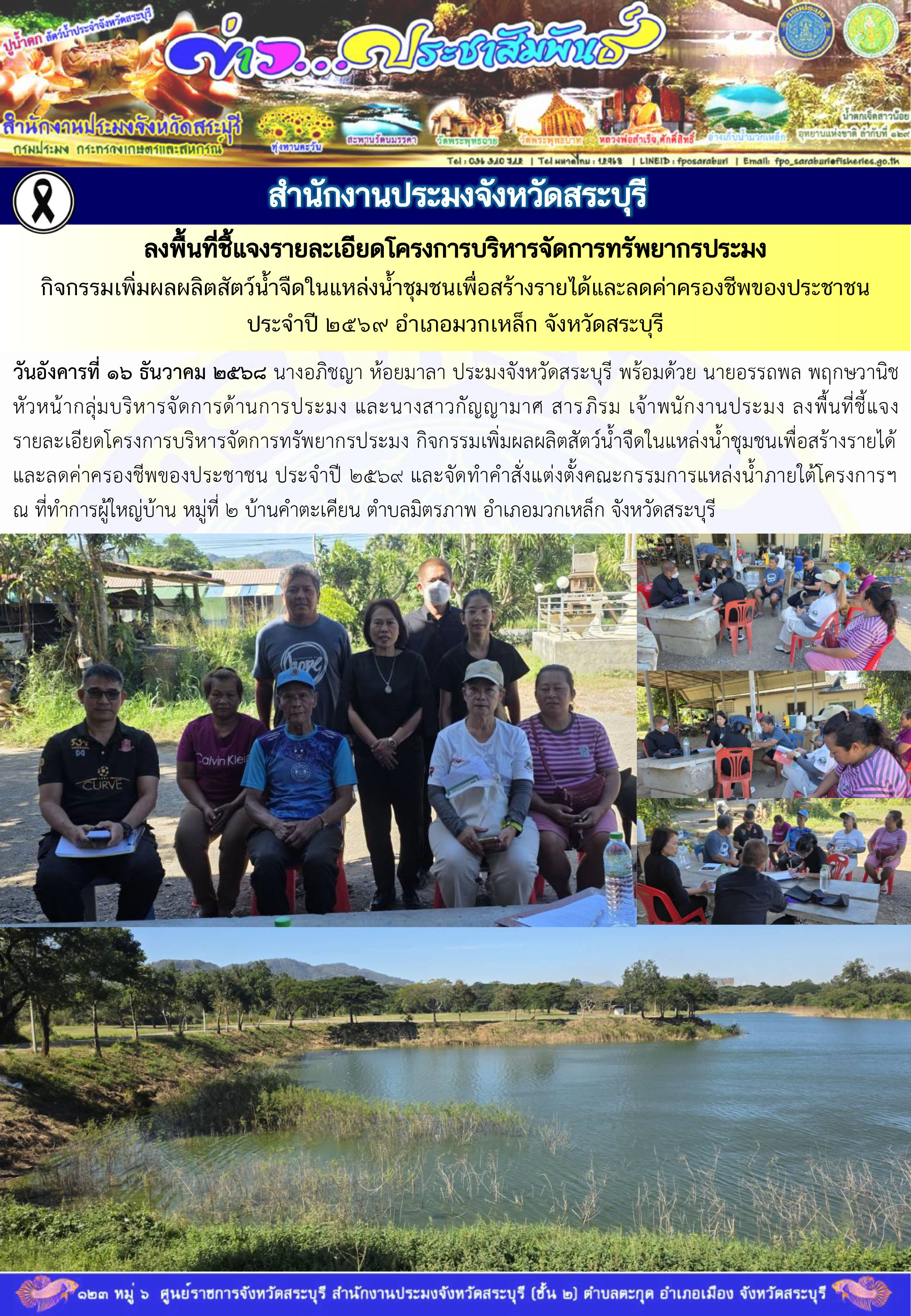 กับข้อเสนอแนะจากเจ้าของข้อมูล โดยสำนักงานประมงจังหวัดสระบุรีจะประกาศแจ้งให้ทราบอย่างชัดเจนก่อนเริ่มดำเนินการ