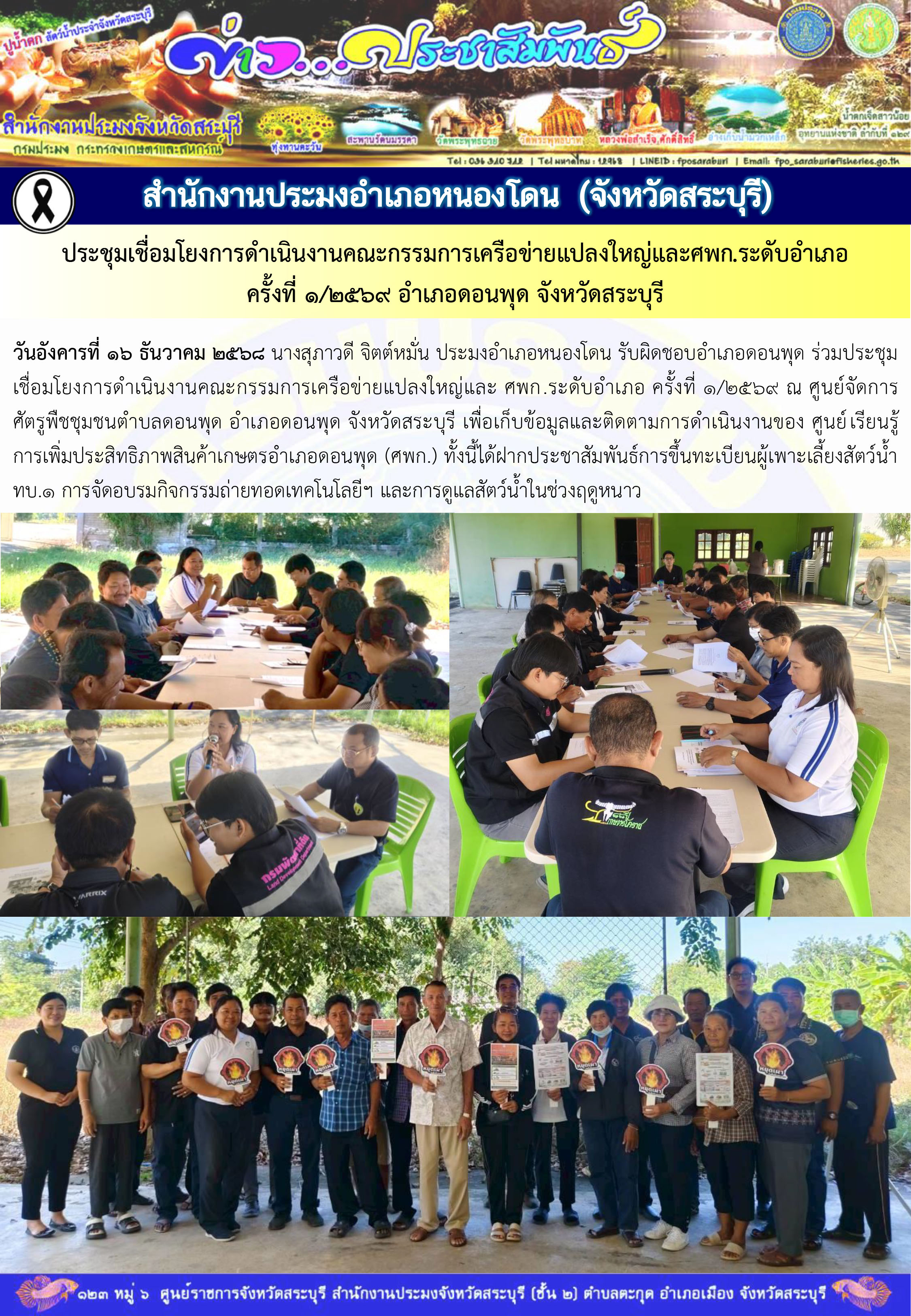 หรืออาจส่งประกาศแจ้งเตือนให้เจ้าของข้อมูลรับทราบโดยตรงตามช่องทางการสื่อสารของสำนักงานประมงจังหวัดสระบุรี