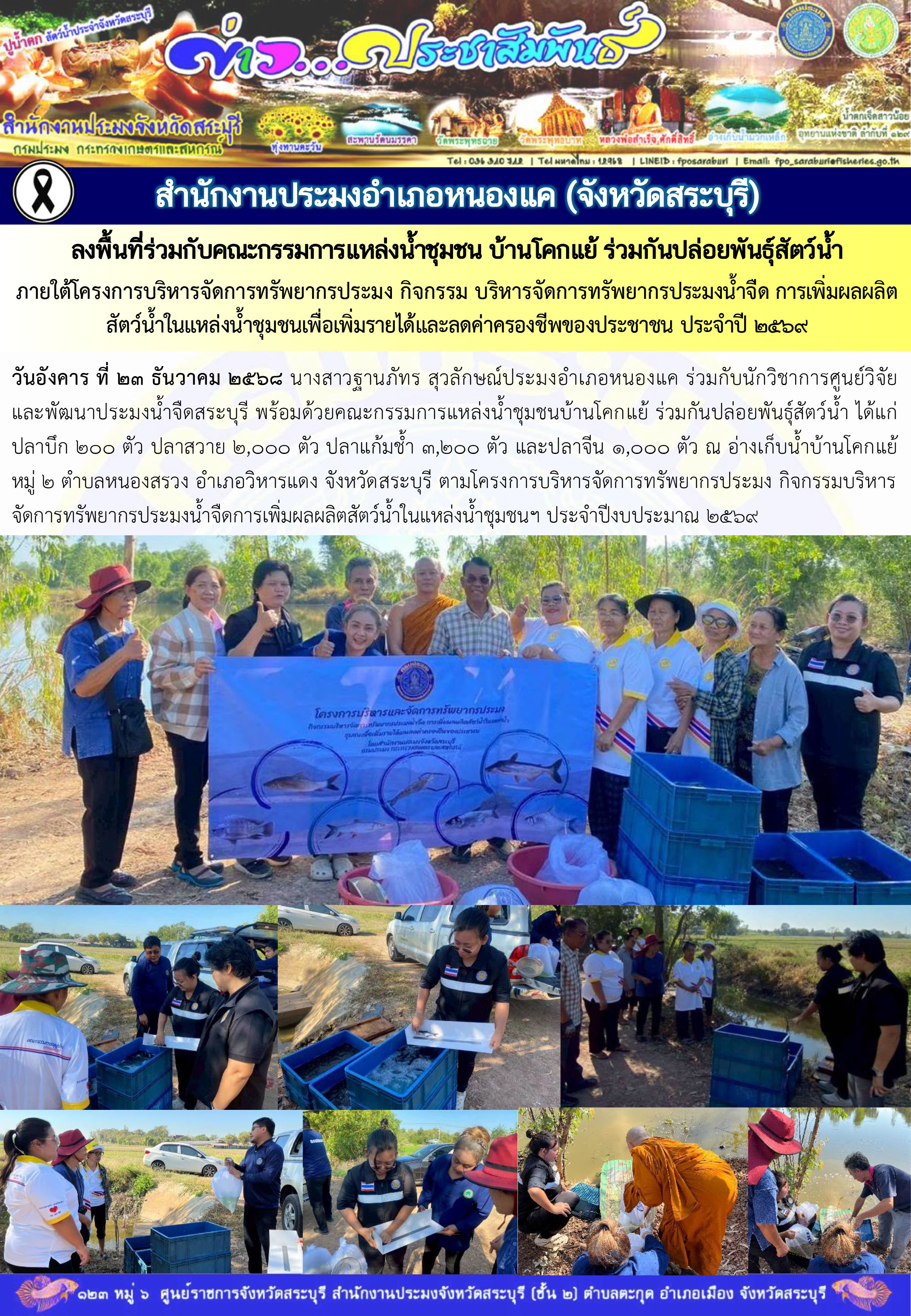 ภารกิจประจำวันที่ 23 ธันวาคม 2568 สำนักงานประมงจังหวัดสระบุรี