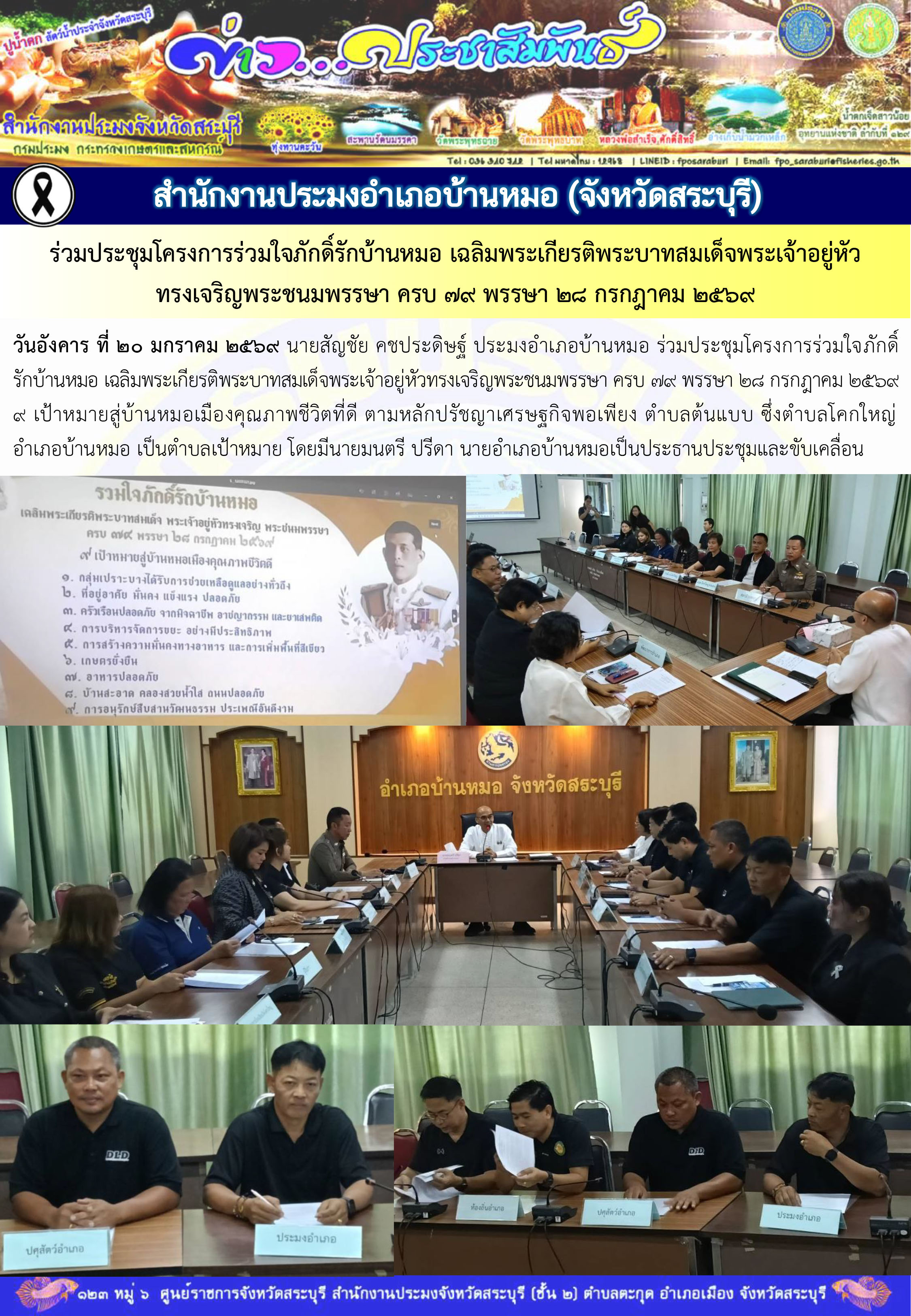สำนักงานประมงอำเภอบ้านหมอ ร่วมประชุมโครงการร่วมใจภักดิ์รักบ้านหมอ เฉลิมพระเกียรติพระบาทสมเด็จพระเจ้าอยู่หัว ทรงเจริญพระชนมพรรษา ครบ 79 พรรษา 28 กรกฎาคม 2569