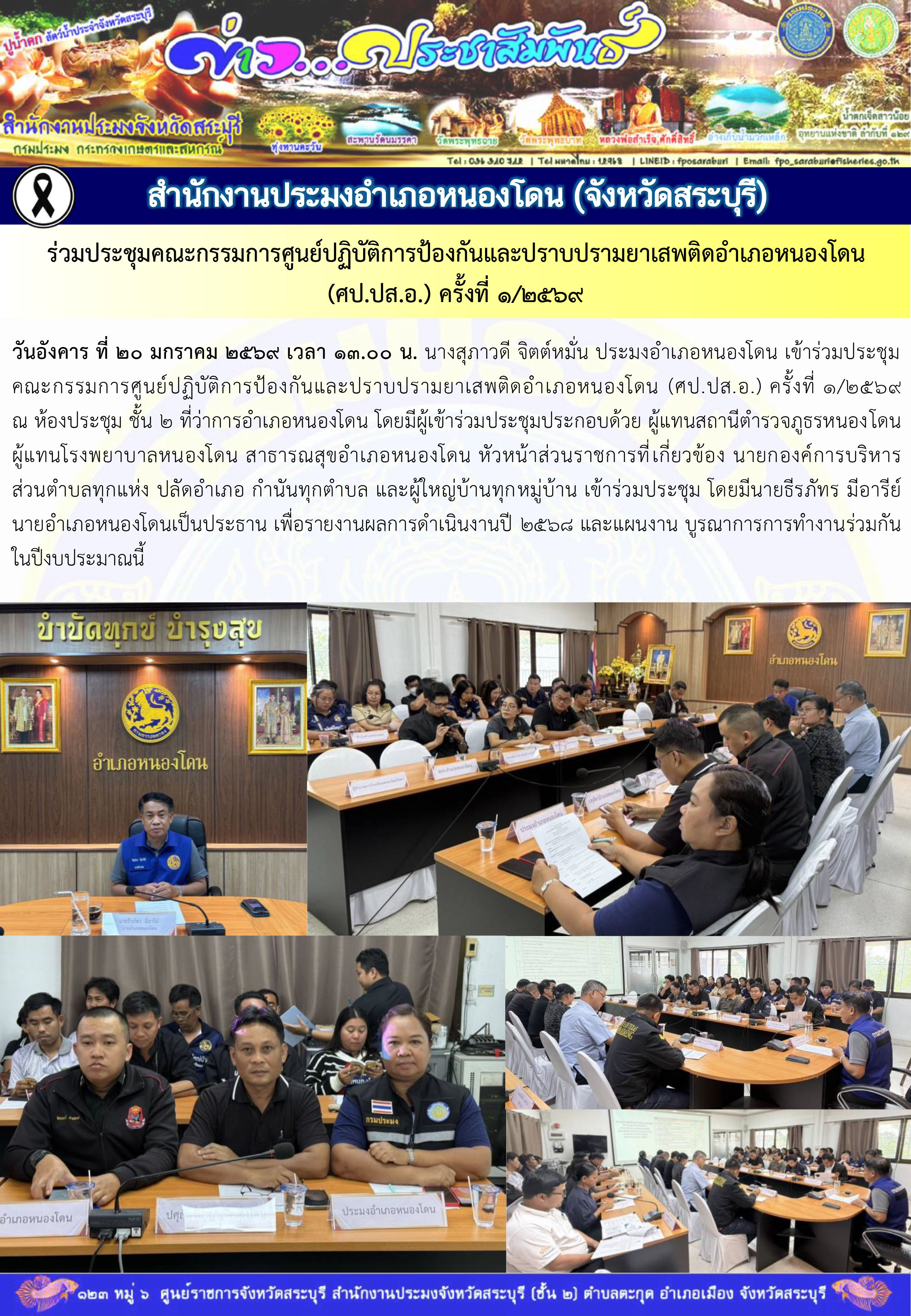 สำนักงานประมงอำเภอหนองโดนร่วมประชุมคณะกรรมการศูนย์ปฏิบัติการป้องกันและปราบปรามยาเสพติดอำเภอหนองโดน (ศป.ปส.อ.) ครั้งที่ 1/2569