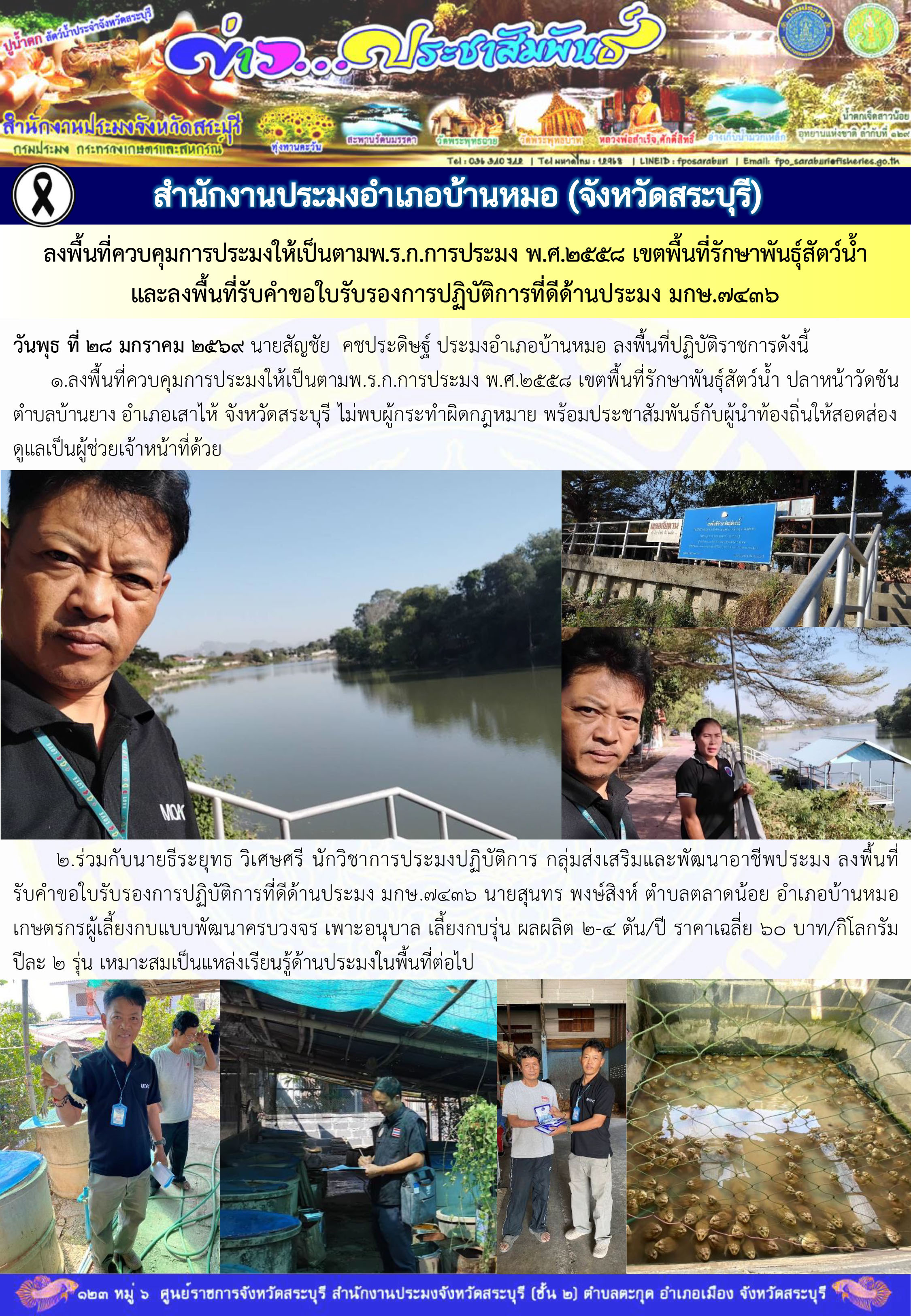 ภารกิจประจำวันที่ 28 มกราคม 2569 สำนักงานประมงจังหวัดสระบุรี