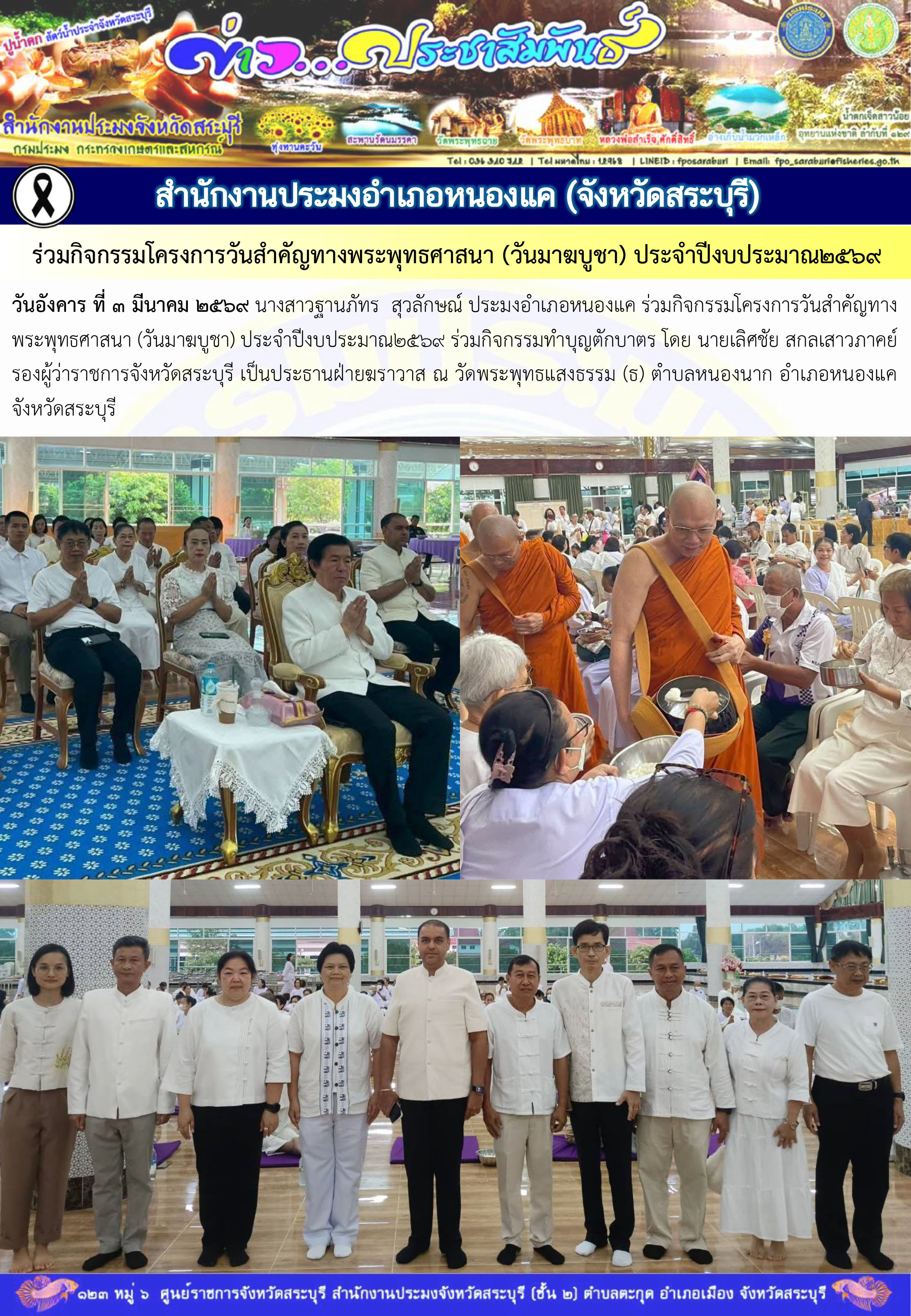 สำนักงานประมงอำเภอหนองแค ร่วมกิจกรรมโครงการวันสำคัญทางพระพุทธศาสนา (วันมาฆบูชา) ประจำปีงบประมาณ2569
